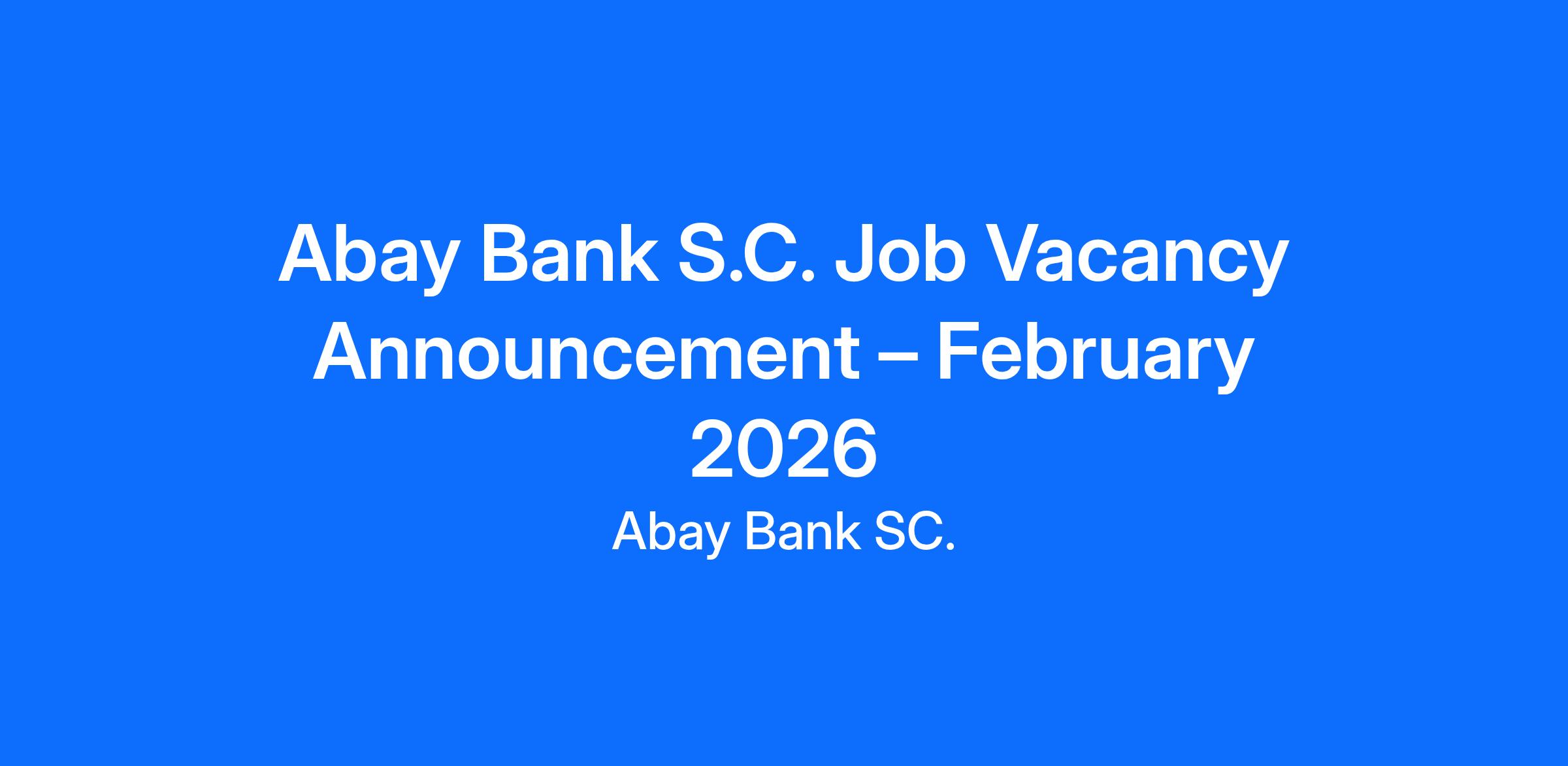 Abay Bank S.C. invites competent and qualified candidates to apply for multiple positions across its branch network and head office. Established in 2010, Abay Bank has grown into a full‑fledged financial institution serving diverse economic sectors including trade, agriculture, industry, transportation, construction, and real estate.