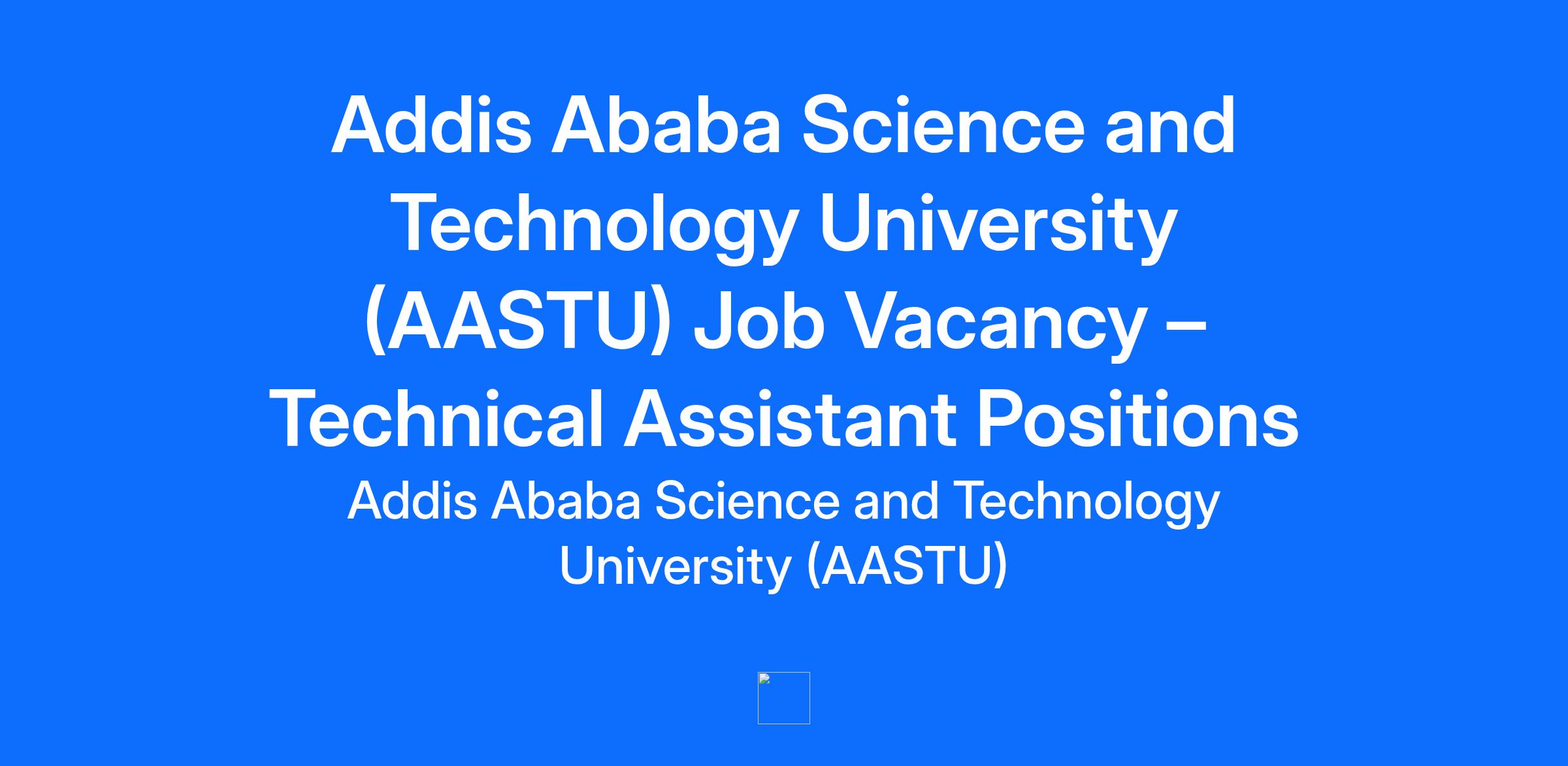 Addis Ababa Science and Technology University invites qualified applicants to apply for multiple Technical Assistant job opportunities in Addis Ababa, Ethiopia. These positions are ideal for graduates and experienced professionals in engineering, science, and technology fields who want to advance their careers in higher education and research.