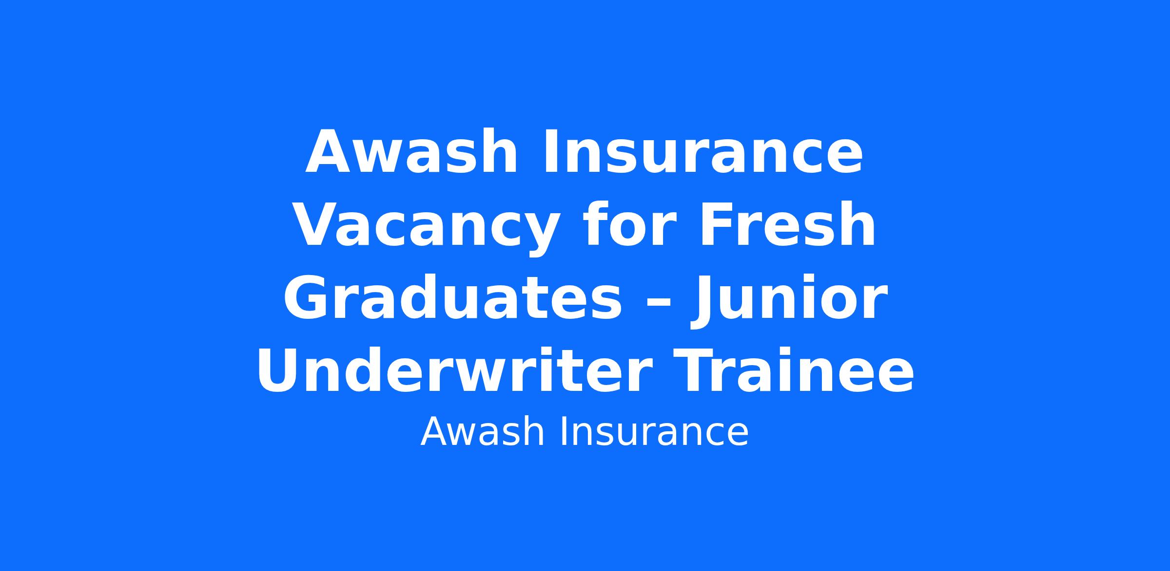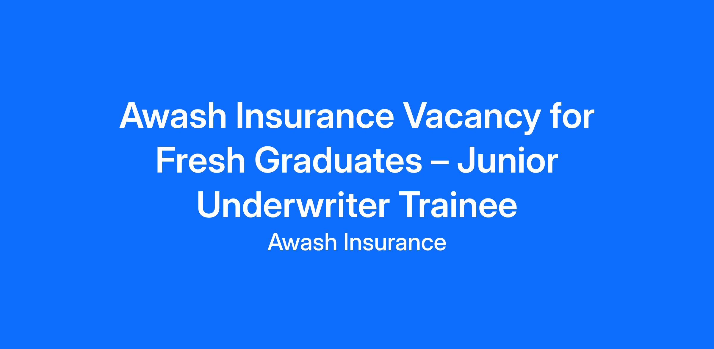 Awash Insurance invites fresh graduates to apply for the role of Junior Underwriter – Trainee. This entry‑level opportunity is ideal for candidates seeking to launch their careers in insurance jobs in Ethiopia and gain valuable experience in underwriting.