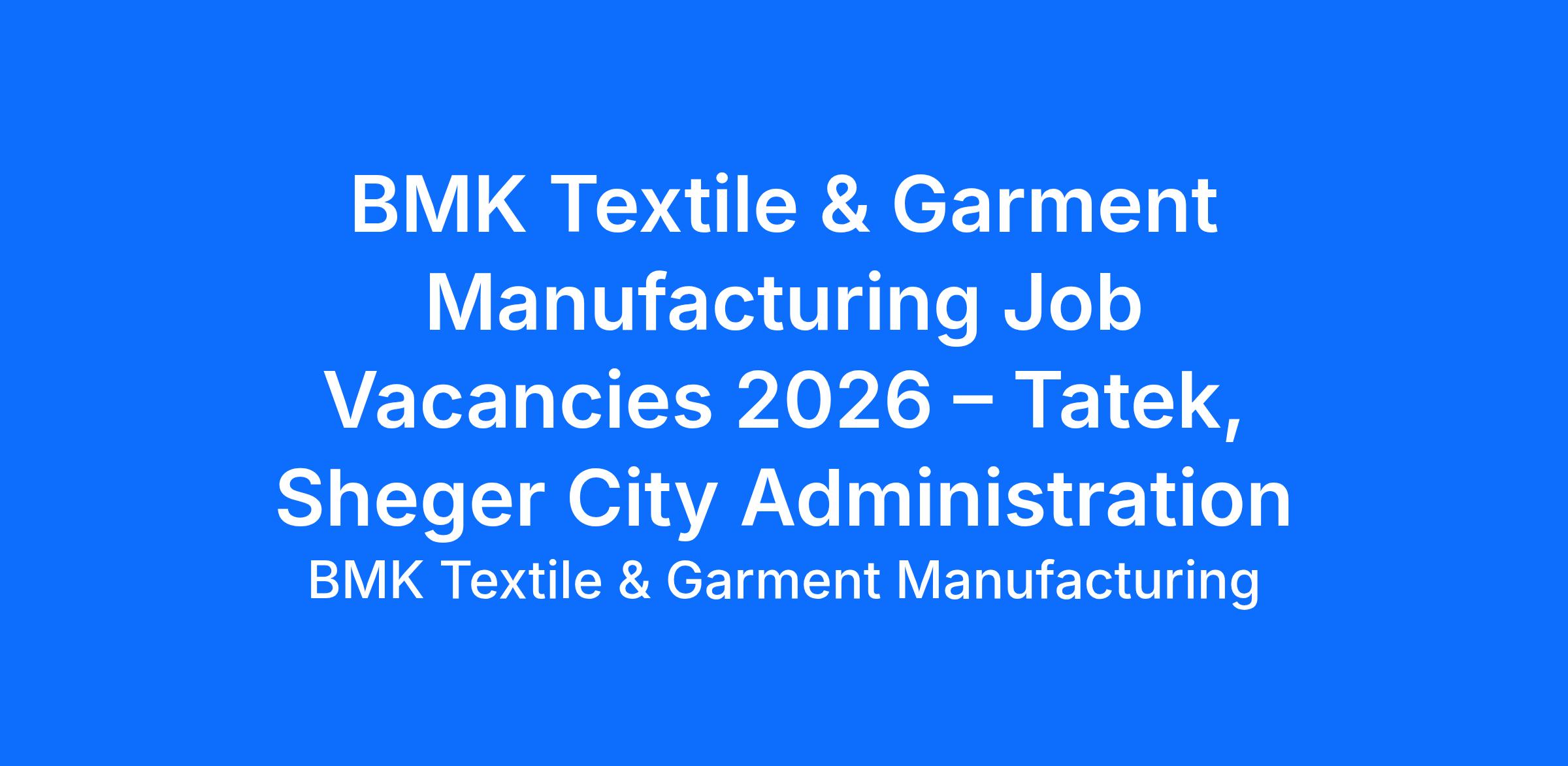 BMK Textile & Garment Manufacturing hiring Graduate Program candidates in Tatek, Sheger City Administration, Ethiopia, 2026