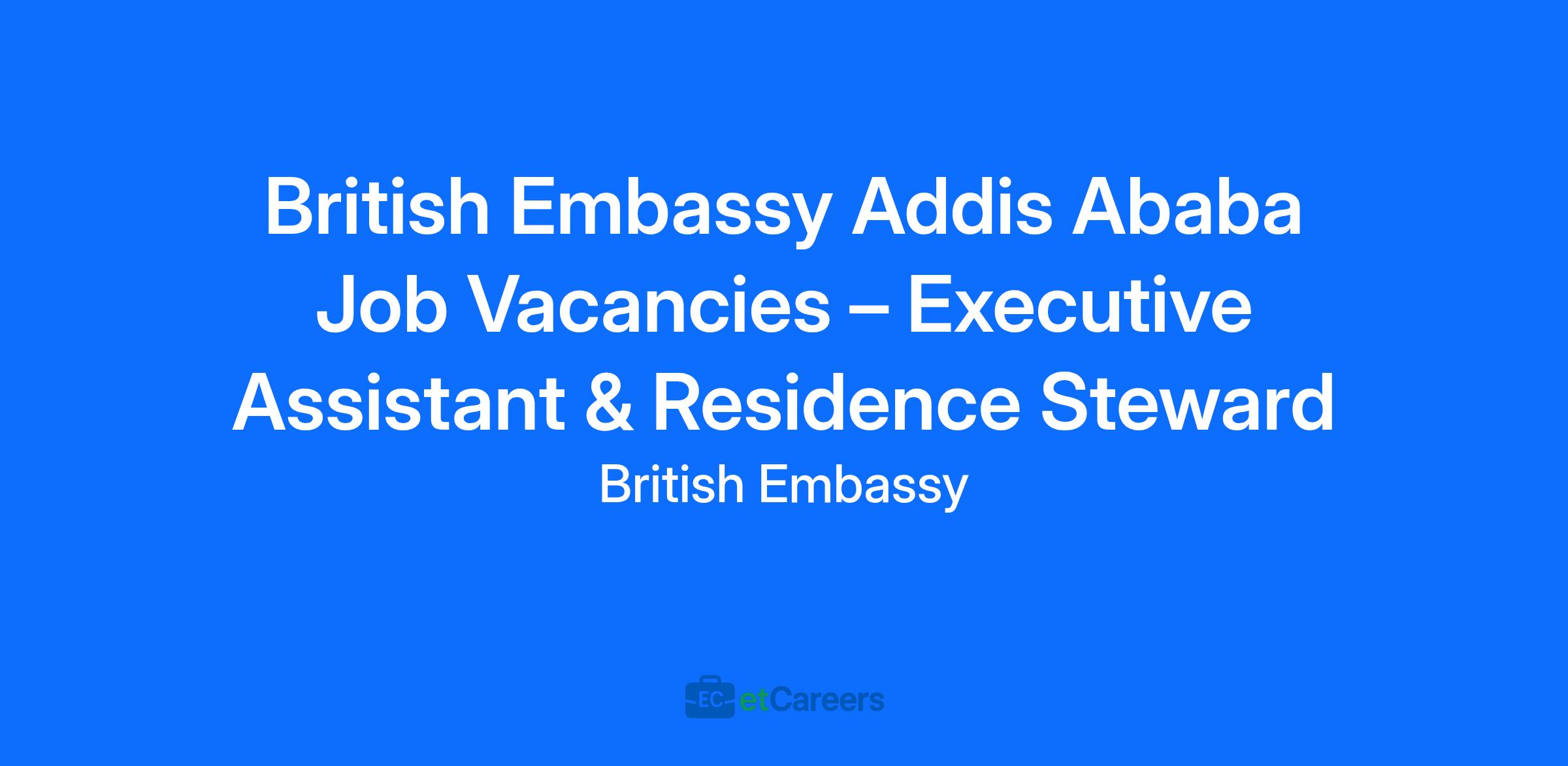 British Embassy Addis Ababa Job Vacancies – Executive Assistant & Residence Steward