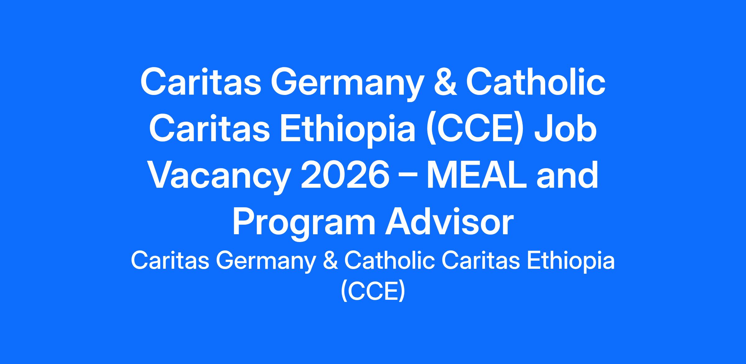 Caritas Germany & Catholic Caritas Ethiopia (CCE) Job Vacancy 2026 – MEAL and Program Advisor
