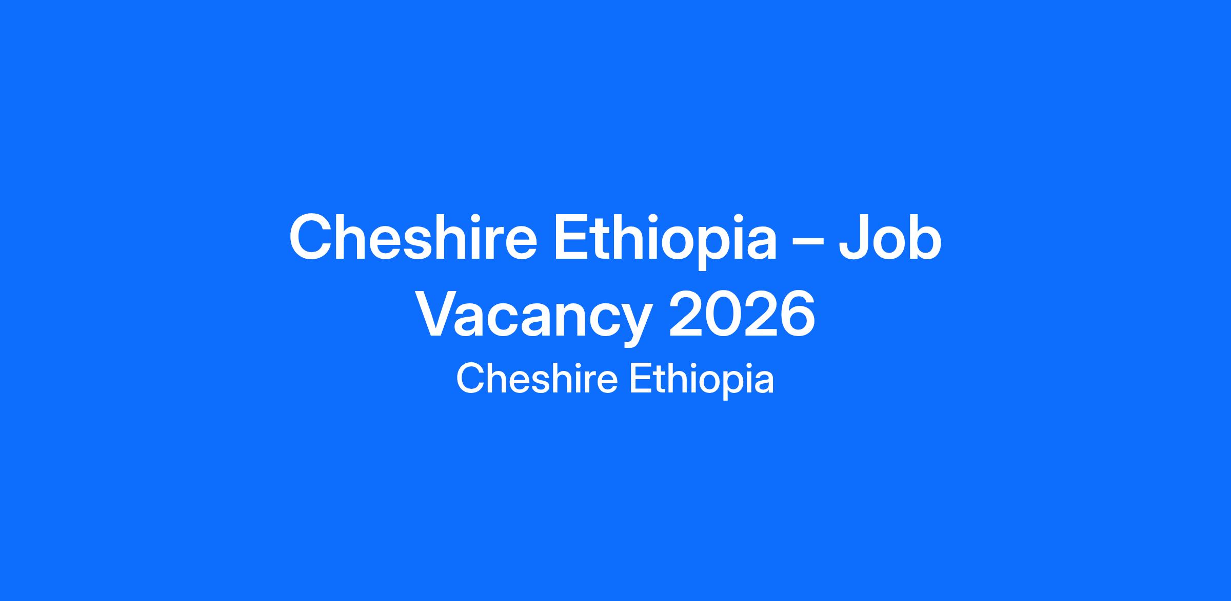 Cheshire Ethiopia – Job Vacancy 2026