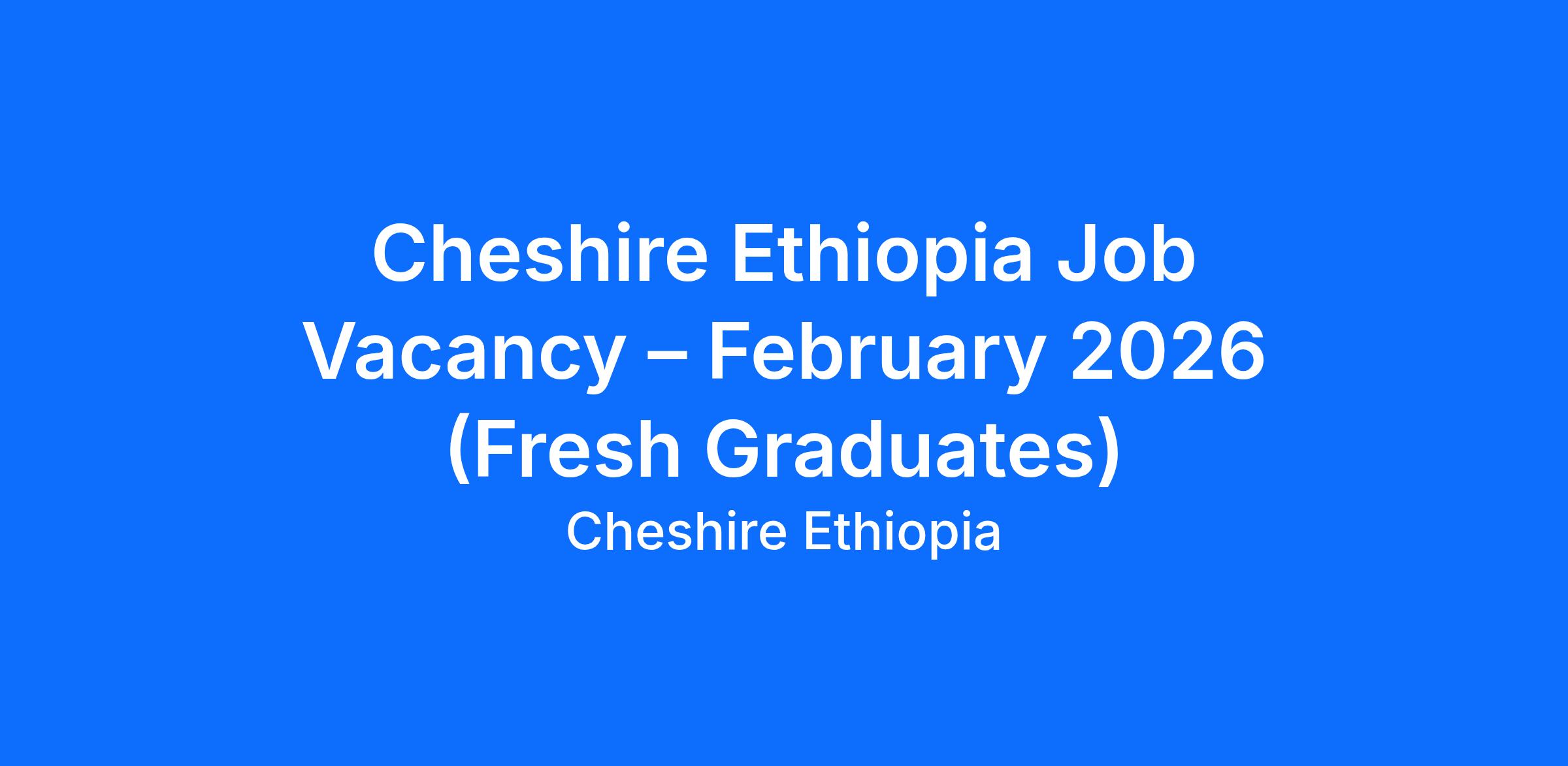 Cheshire Ethiopia Job Vacancy – February 2026 (Fresh Graduates)