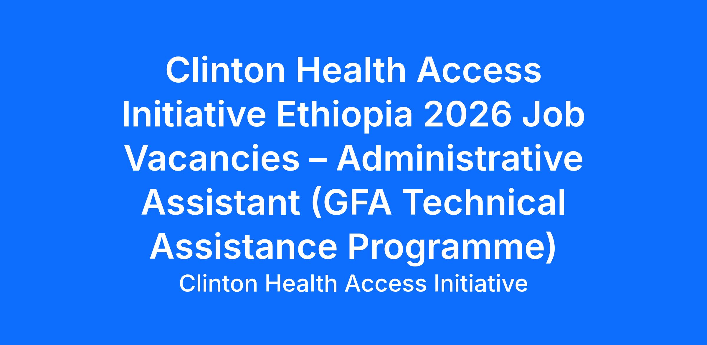 Clinton Health Access Initiative Ethiopia 2026 Job Vacancies – Administrative Assistant (GFA Technical Assistance Programme):