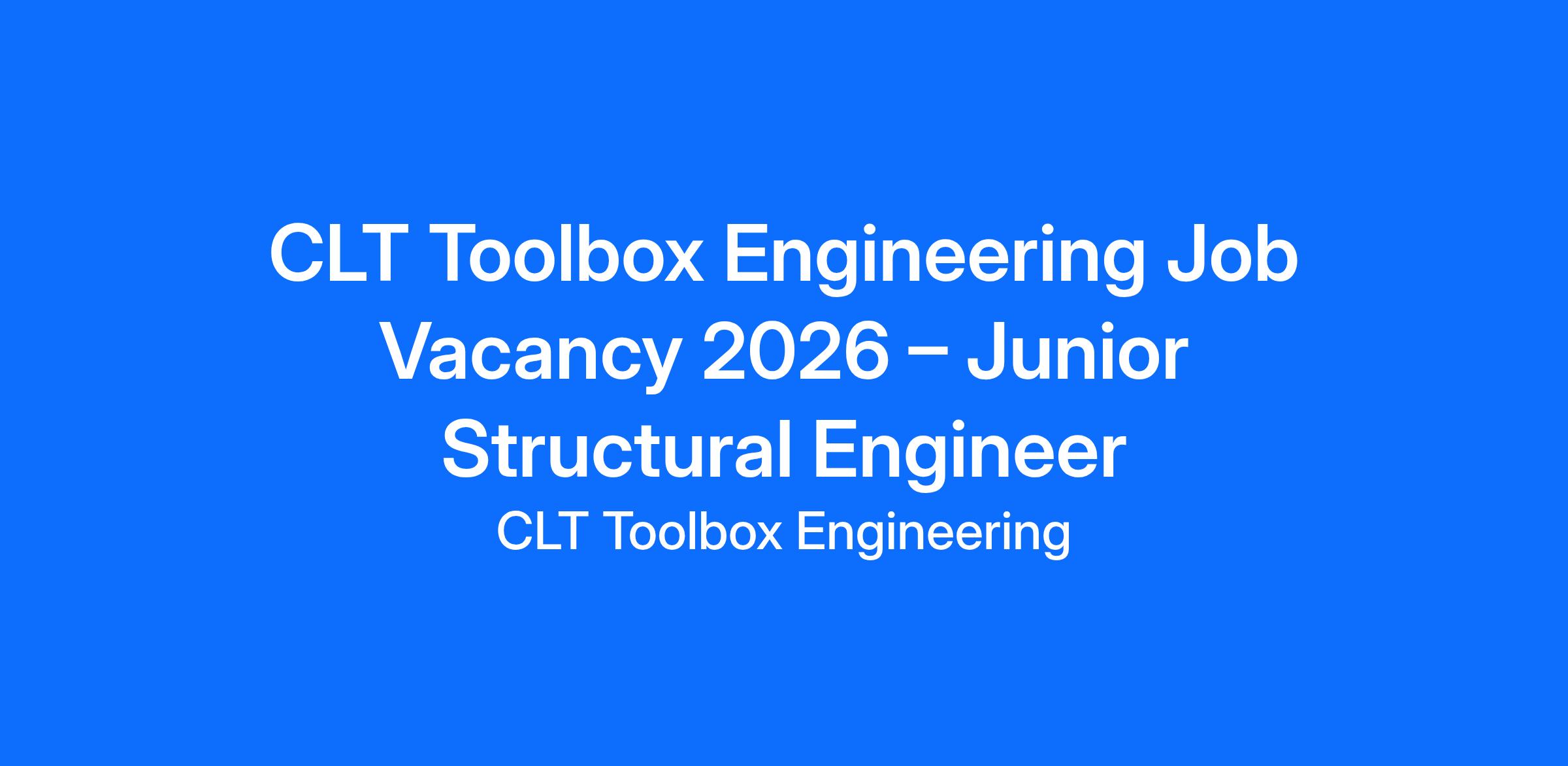 CLT Toolbox Engineering Job Vacancy 2026 – Junior Structural Engineer