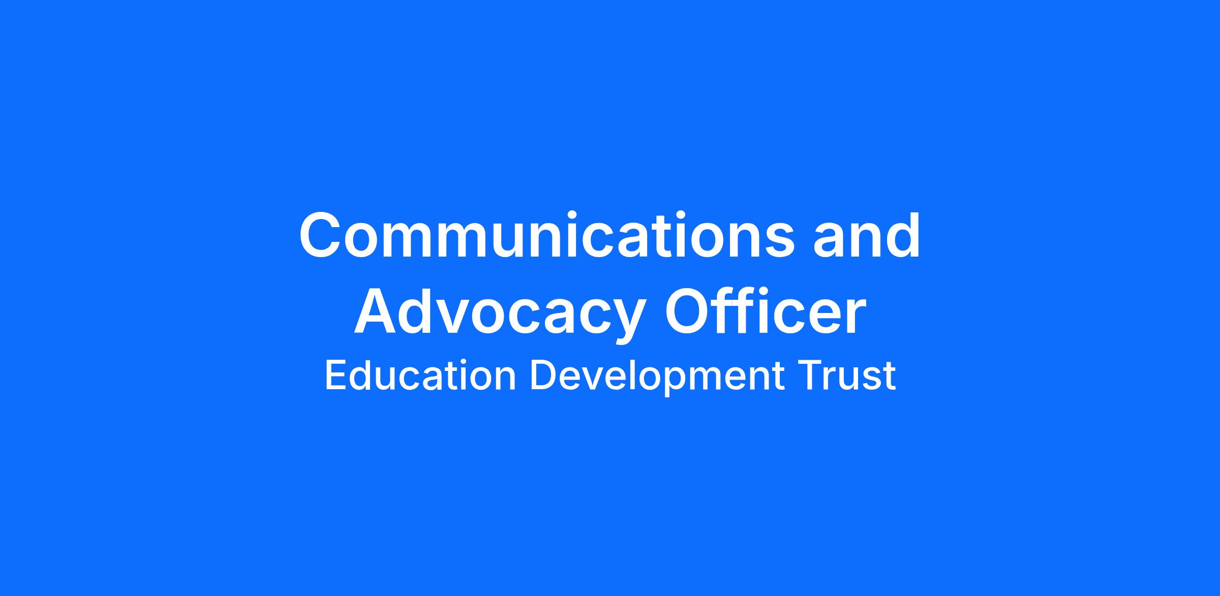 Education Development Trust (edt) are looking for a Communications and Advocacy Officer who will will lead the development and implementation of communication, visibility and advocacy strategies for a new education and skills programme in Ethiopia. The programme will strengthen the relevance and quality of secondary education to ensure the successful transition of secondary students to tertiary education or the world of work by equipping them with relevant skills, knowledge and attitude through enhanced implementation of the competency-based curriculum.