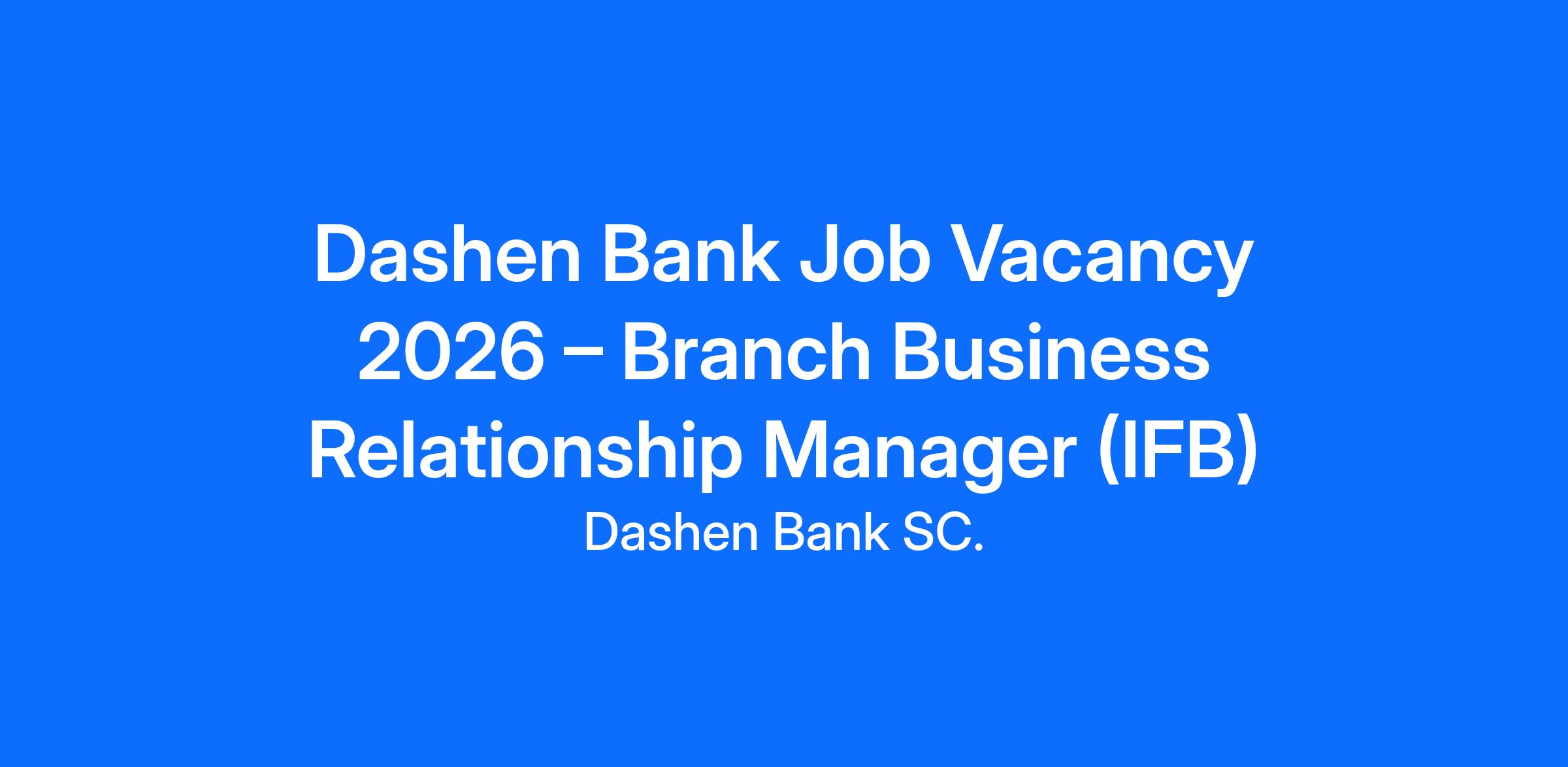 Dashen Bank Job Vacancy 2026 – Branch Business Relationship Manager (IFB)