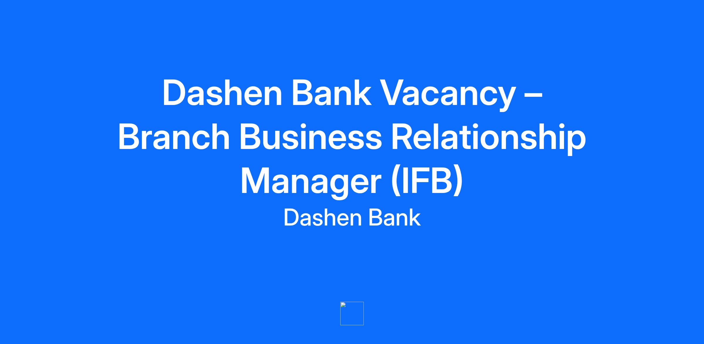 💼 Dashen Bank Vacancy – Branch Business Relationship Manager (IFB)