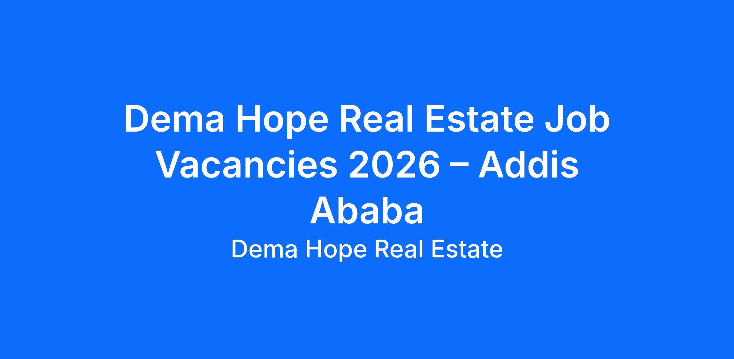 Dema Hope Real Estate Job Vacancies 2026 – Addis Ababa