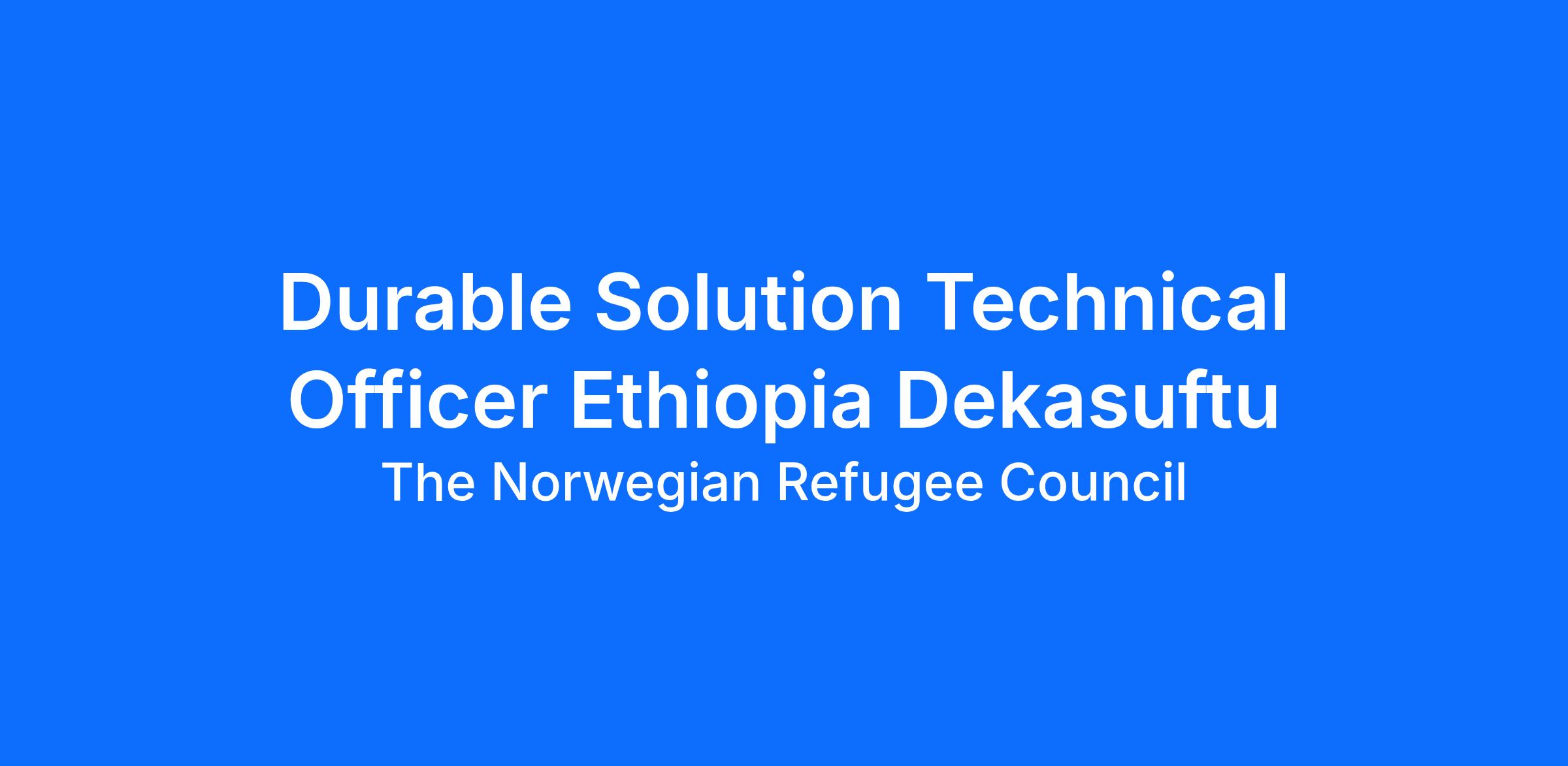 Durable Solution Technical Officer Ethiopia Dekasuftu