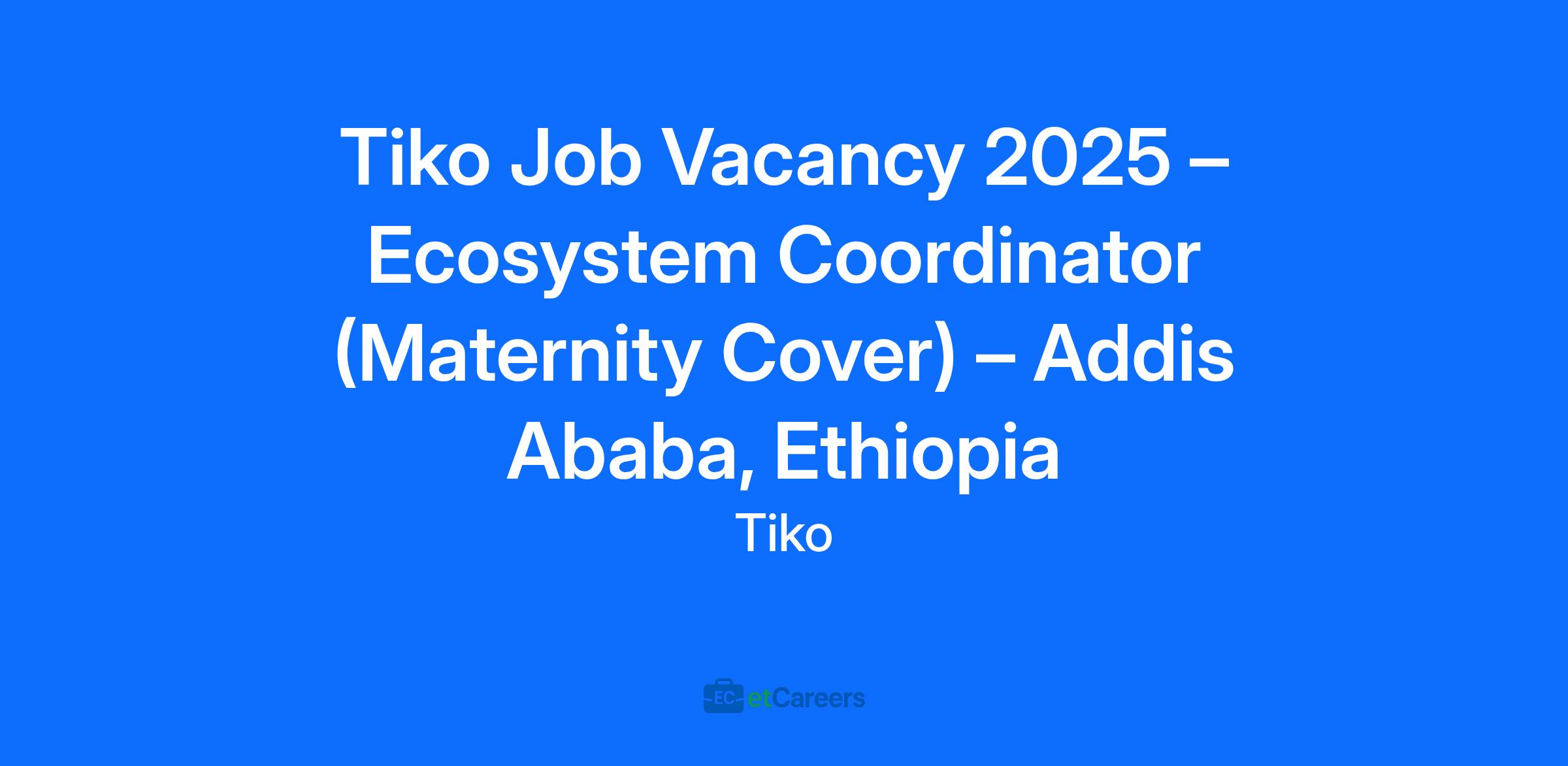 Tiko Job Vacancy 2025 – Ecosystem Coordinator (Maternity Cover) – Addis Ababa, Ethiopia