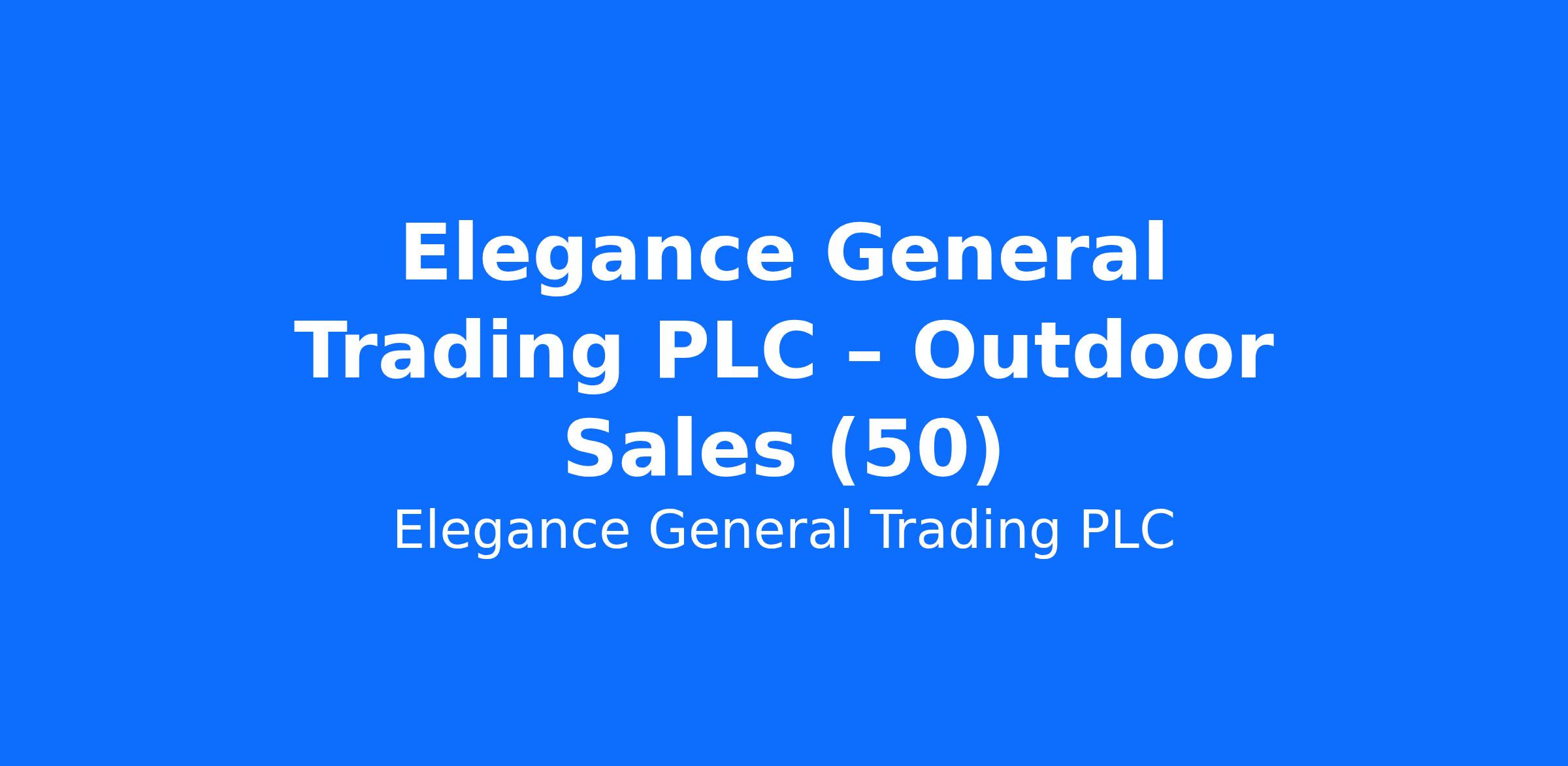 Elegance General Trading PLC β Outdoor Sales (Driver Registration) Jobs in Addis Ababa, Ethiopia 2026