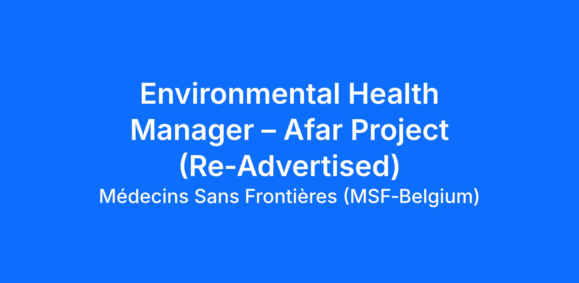 Médecins Sans Frontières (MSF‑Belgium) is seeking qualified candidates for the position of Environmental Health Manager to support its Afar Project in Semera City. This role is critical in planning, coordinating, implementing, and monitoring all logistics activities related to water, health, and sanitation in line with MSF protocols and standards.