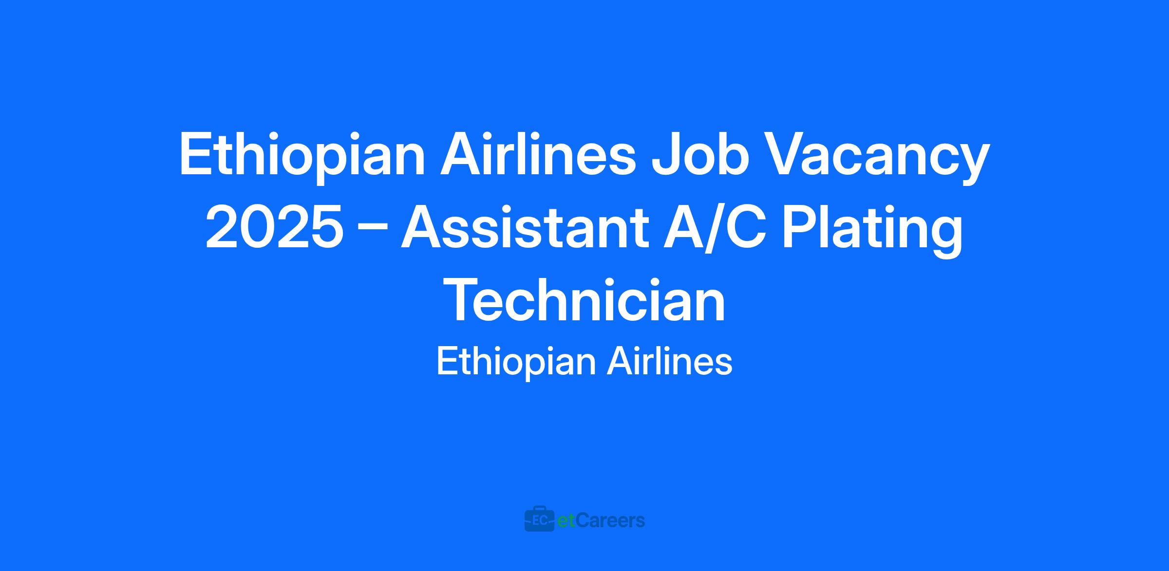 Ethiopian Airlines Job Vacancy 2025 – Assistant A/C Plating Technician