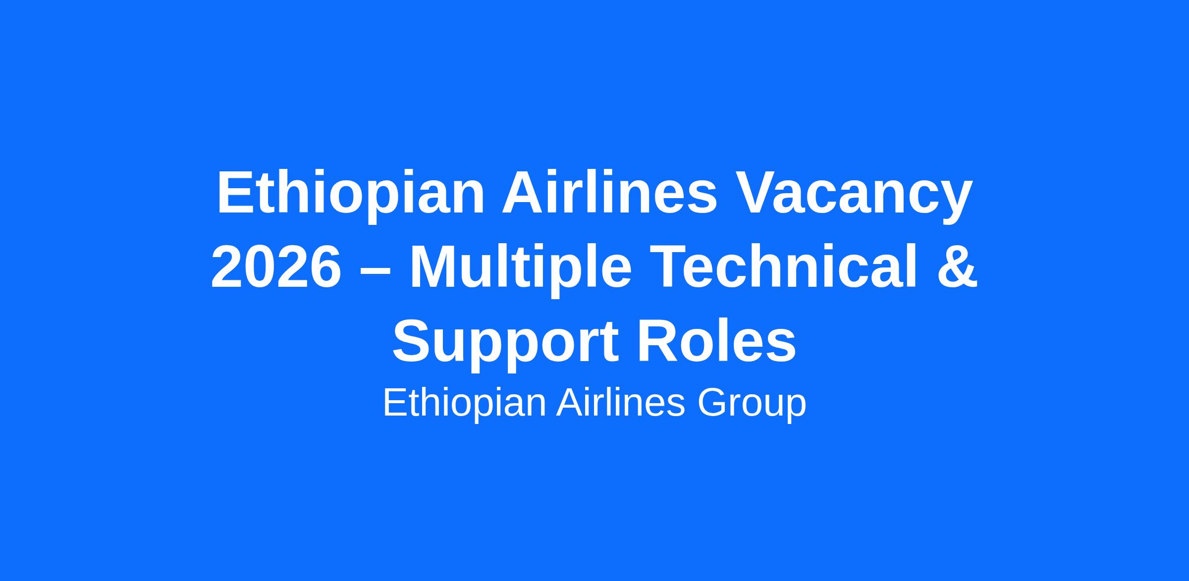 Ethiopian Airlines Vacancy 2026 – Multiple Technical & Support Roles