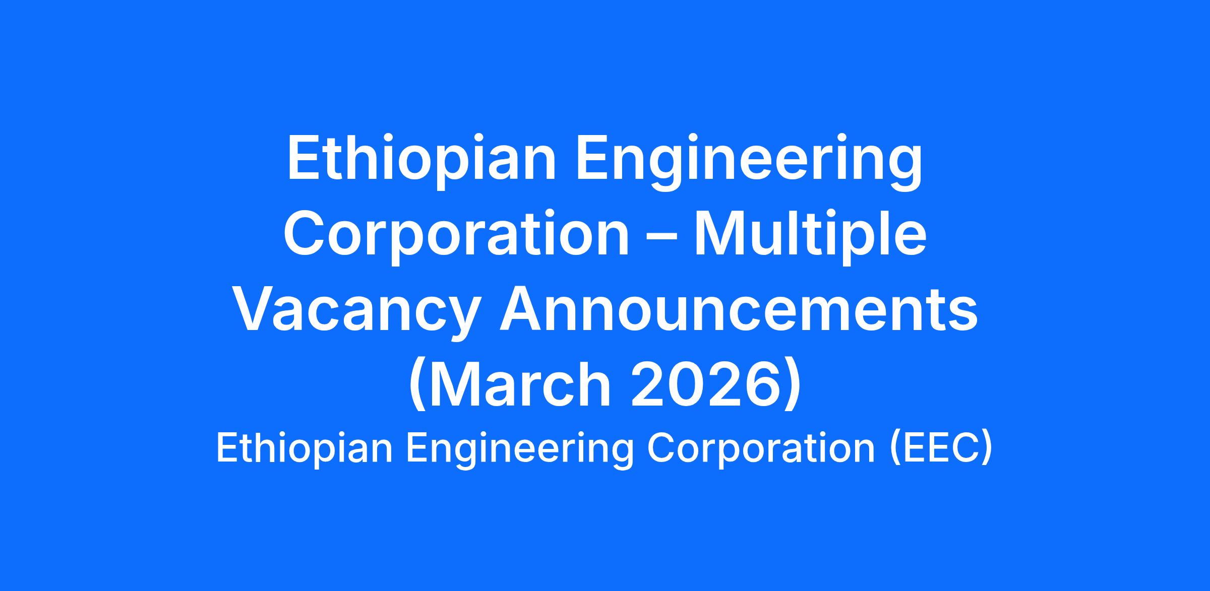 Ethiopian Engineering Corporation (EEC) is a leading organization in Ethiopia providing engineering, procurement, and design services. With a strong focus on innovation and compliance, EEC offers career opportunities for professionals in architecture, engineering, logistics, and supply chain management.