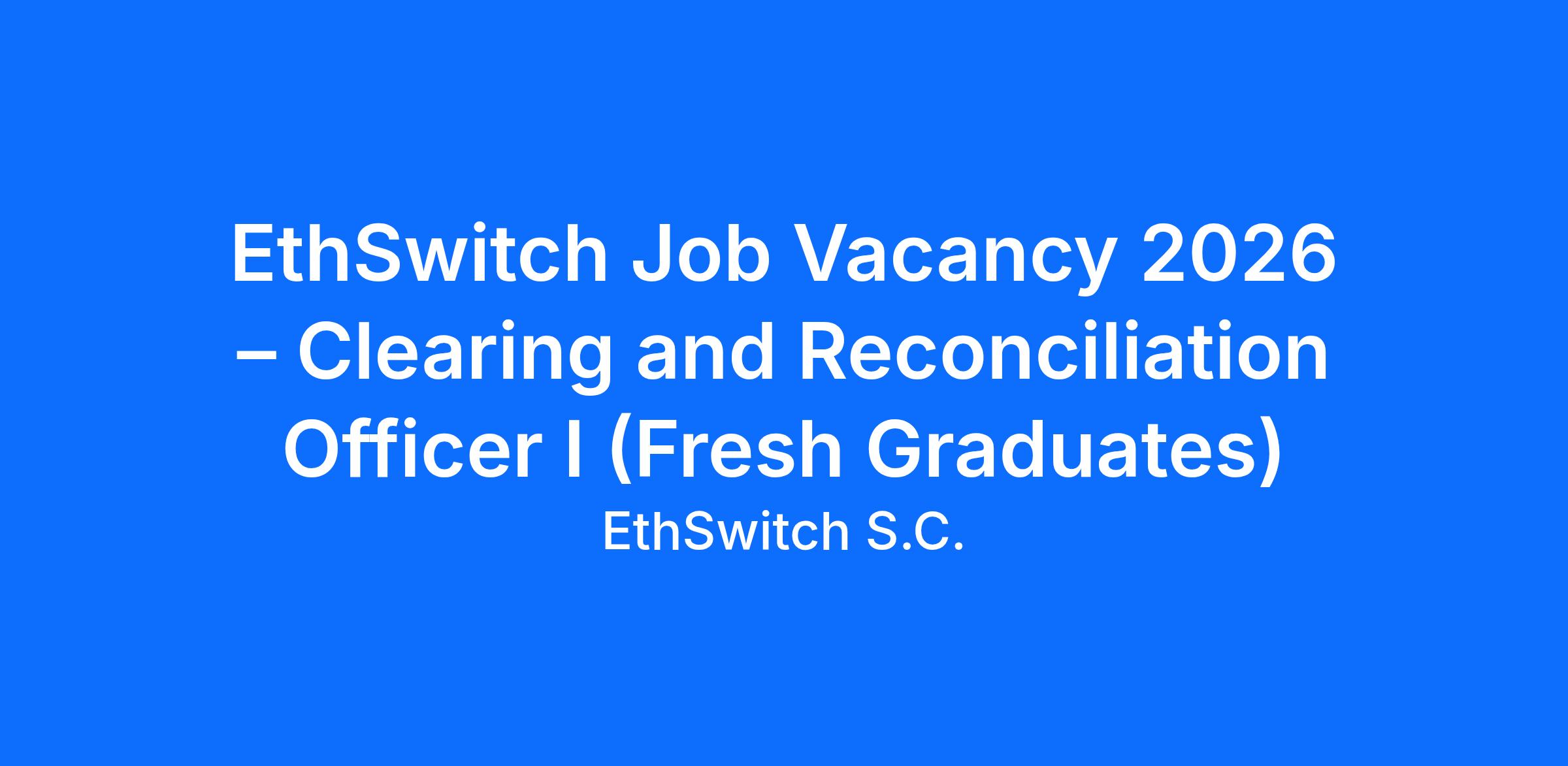 EthSwitch Job Vacancy 2026 – Clearing and Reconciliation Officer I (Fresh Graduates)