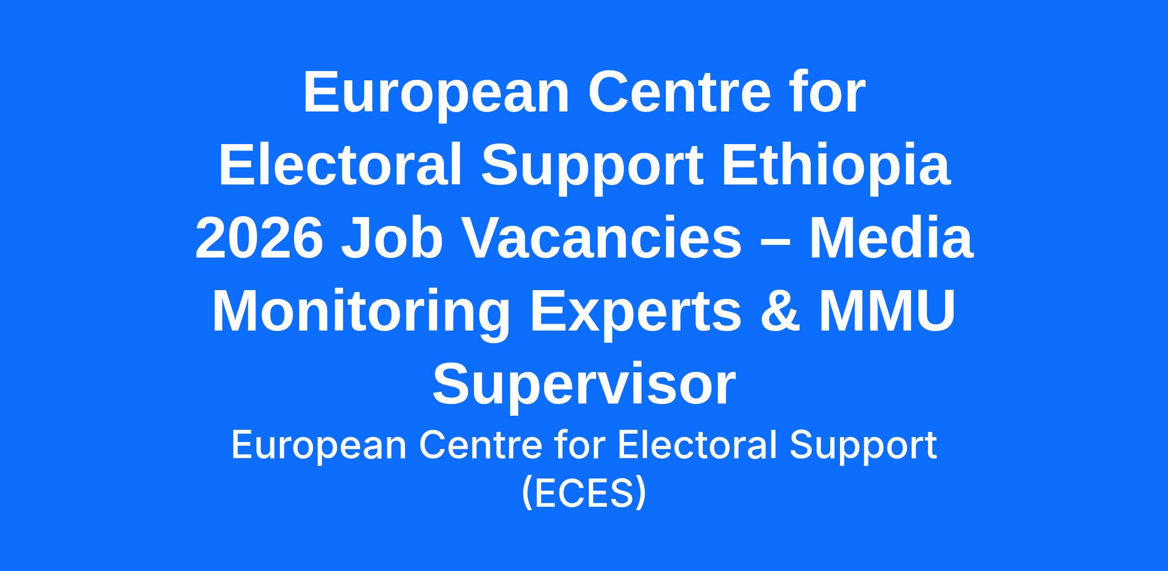 European Centre for Electoral Support Ethiopia 2026 Job Vacancies – Media Monitoring Experts & MMU Supervisor