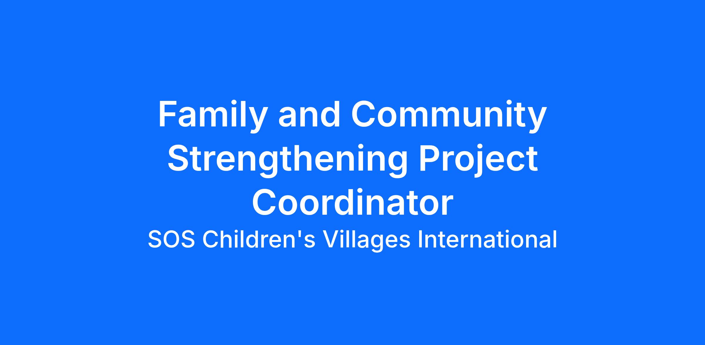 Family and Community Strengthening Project Coordinator Vacancy at About SOS Children's Villages International