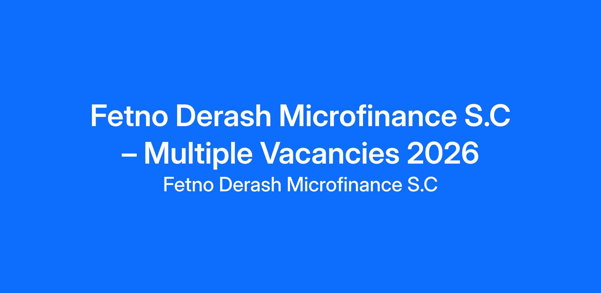 Fetno Derash Microfinance S.C – Vacancy Announcement 2026