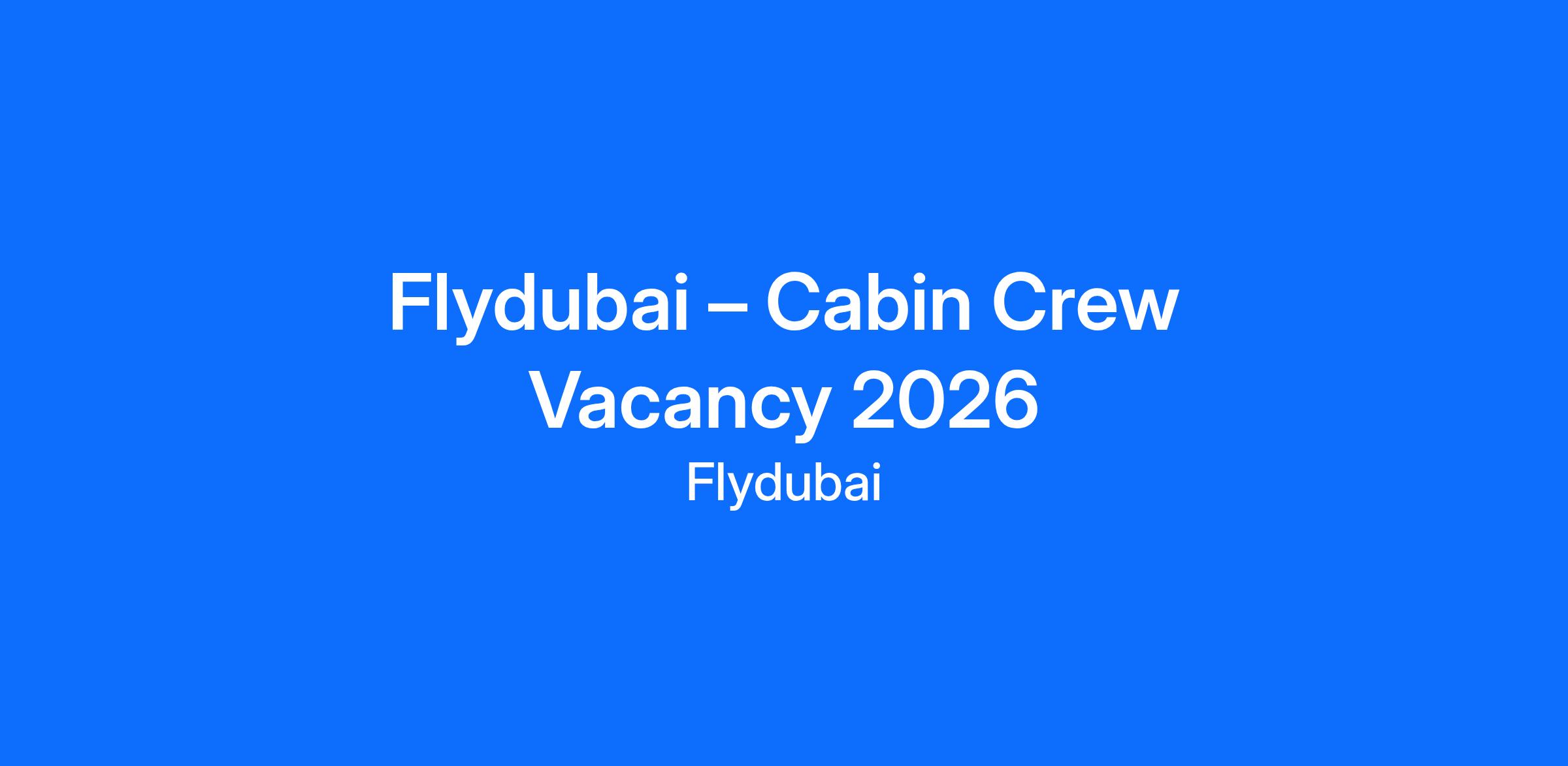 Flydubai – Cabin Crew Vacancy 2026