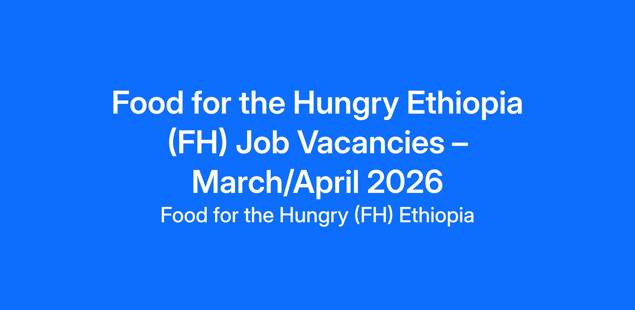 Food for the Hungry Ethiopia (FH) Job Vacancies – March/April 2026