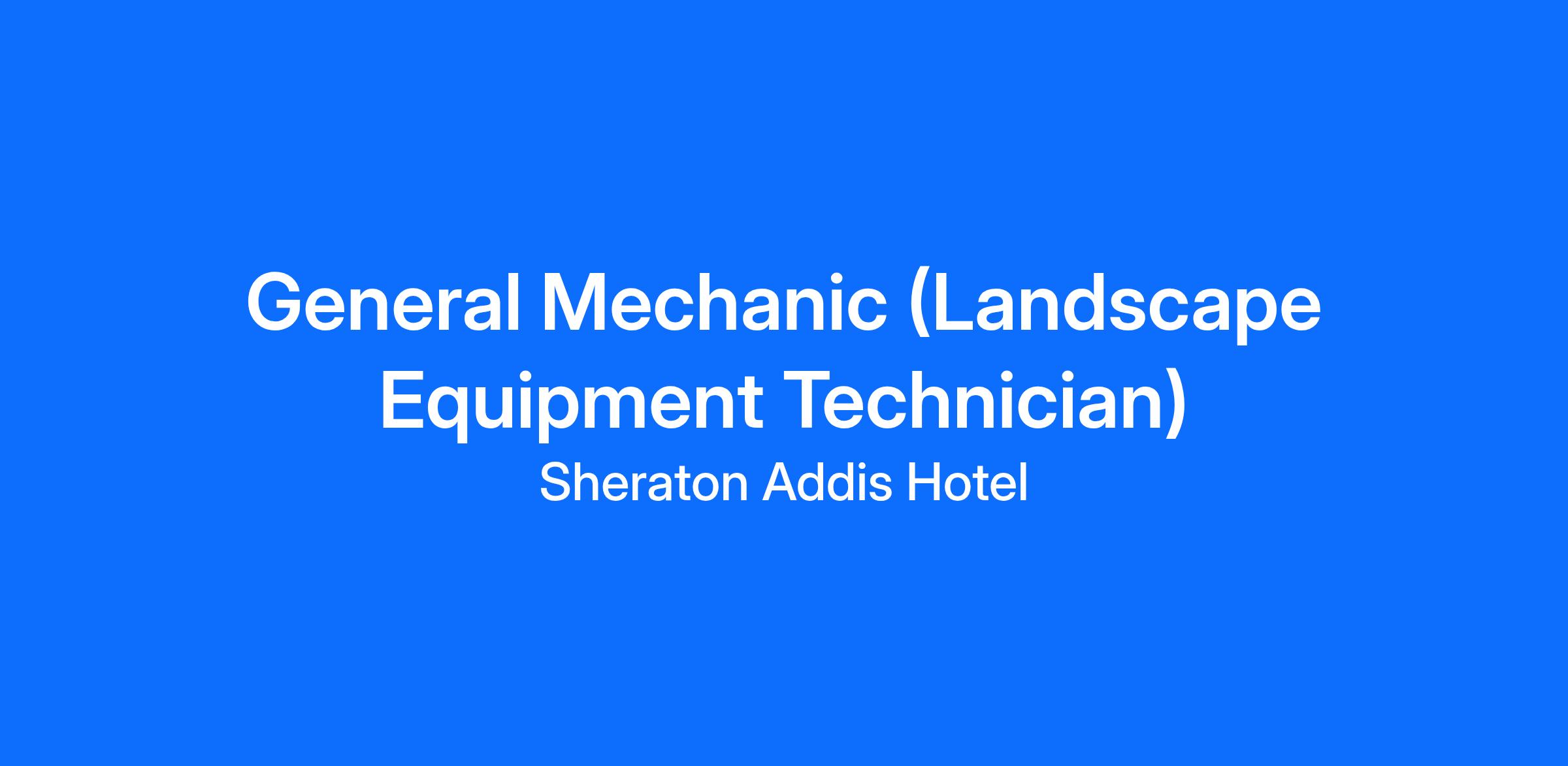 General Mechanic (Landscape Equipment Technician) Vacancy at Sheraton Addis, The Luxury Collection Hotel