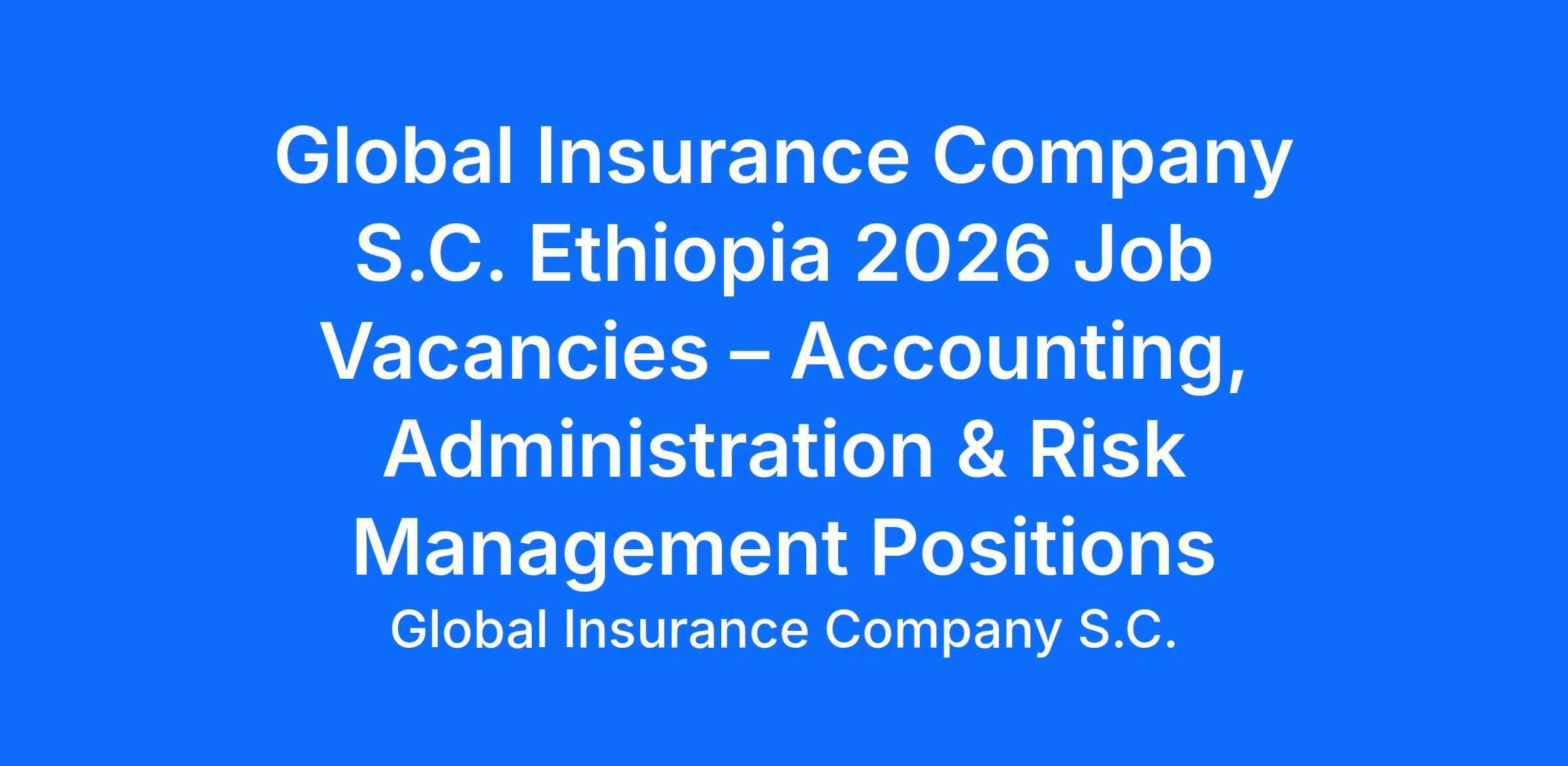 Global Insurance Company (S.C.) Ethiopia 2026 Job Vacancies – Accounting, Administration & Risk Management Positions