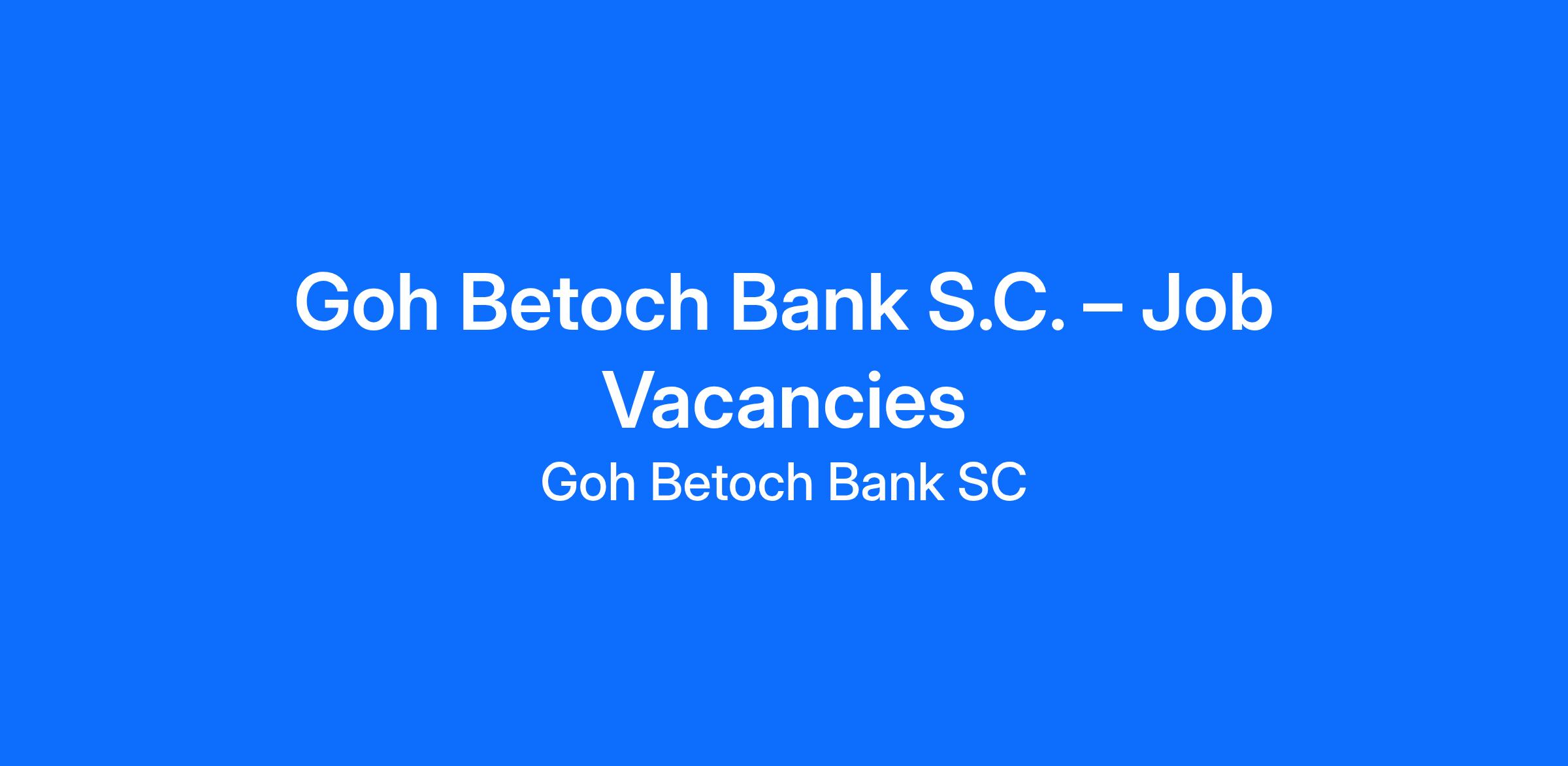 Goh Betoch Bank S.C. – Job Vacancies