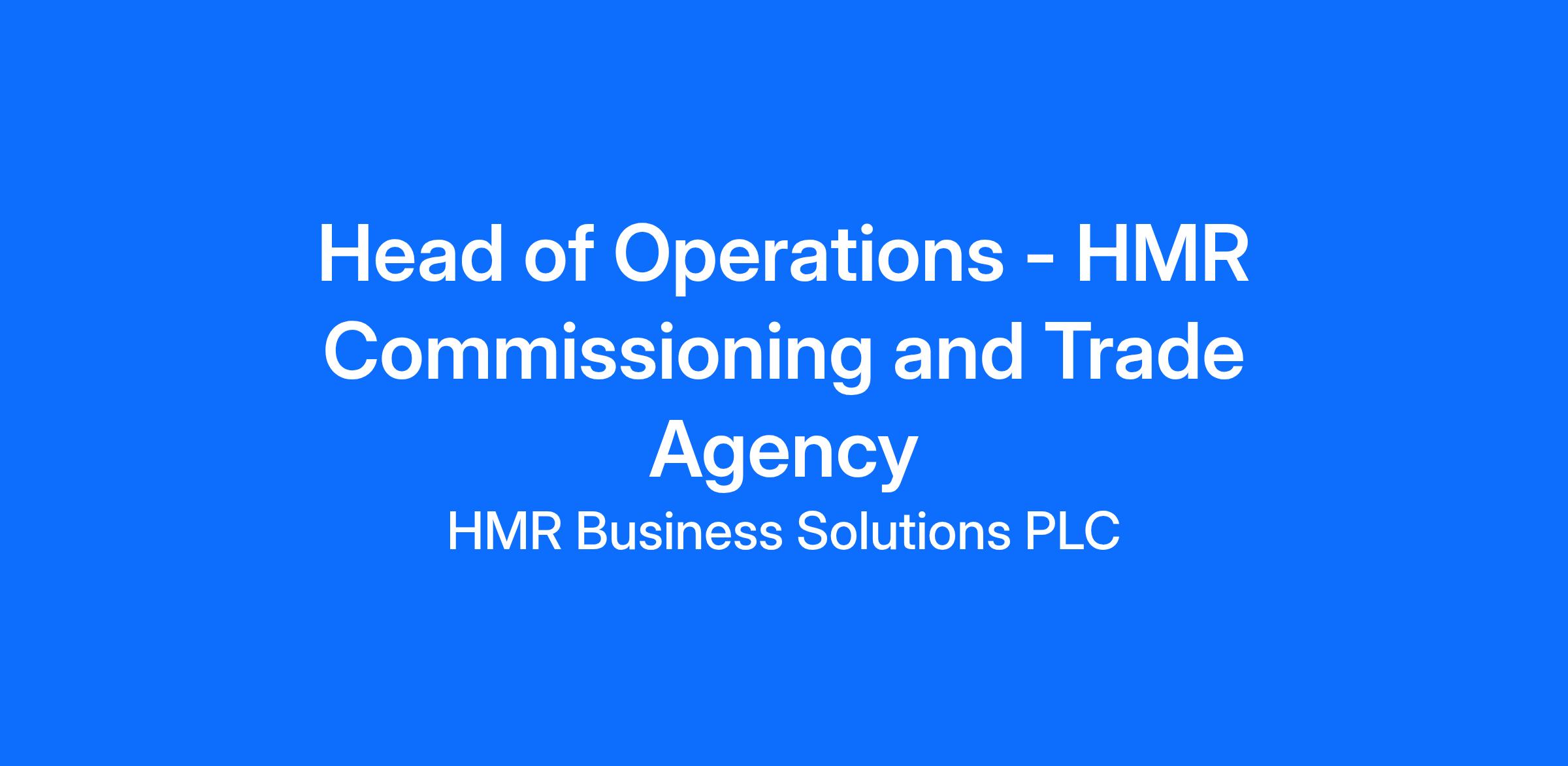 Position 1: Head of Operations - HMR Commissioning and Trade Agency