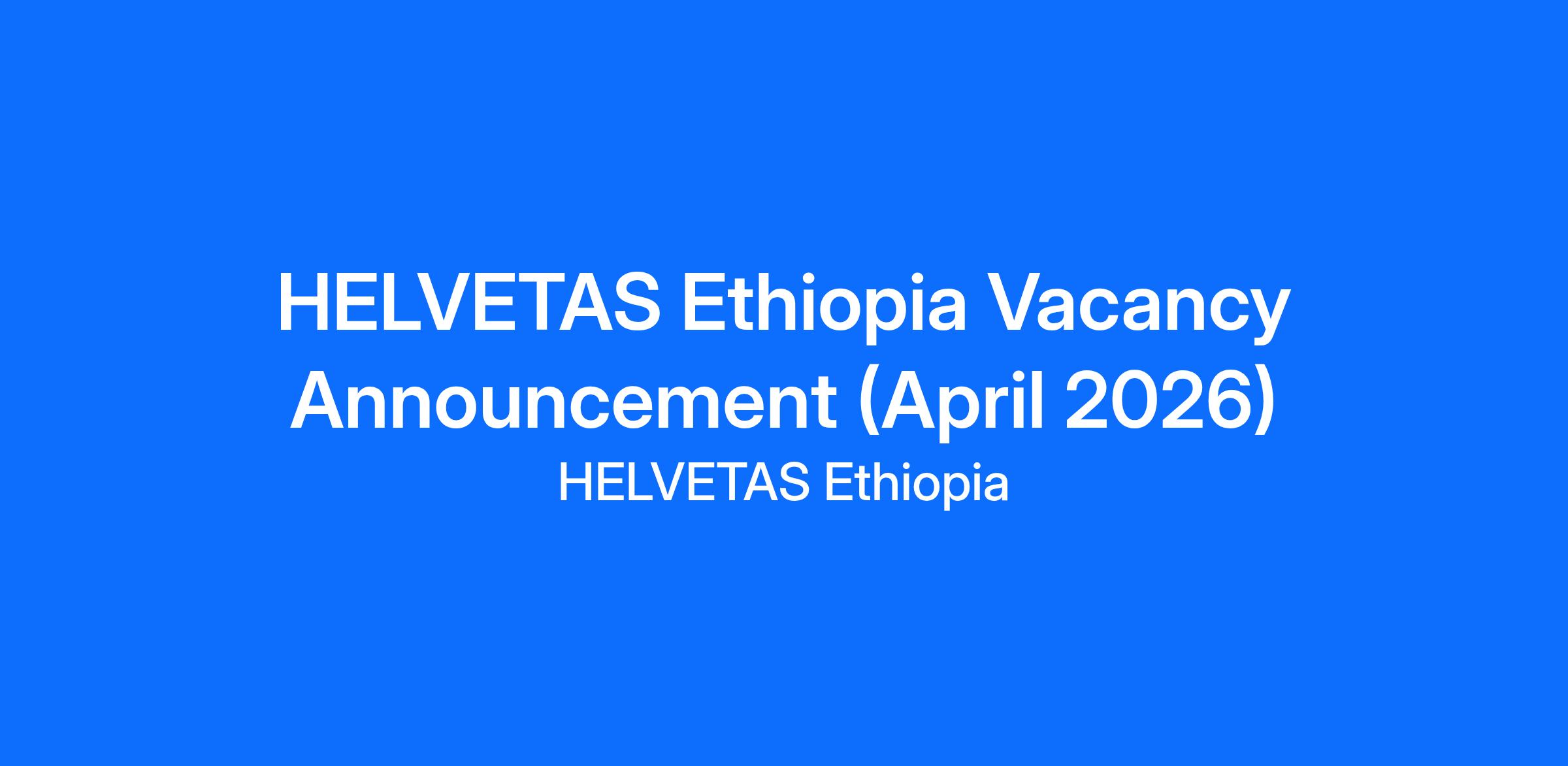 HELVETAS Ethiopia - NGO Job Vacancy Announcement (April 2026)