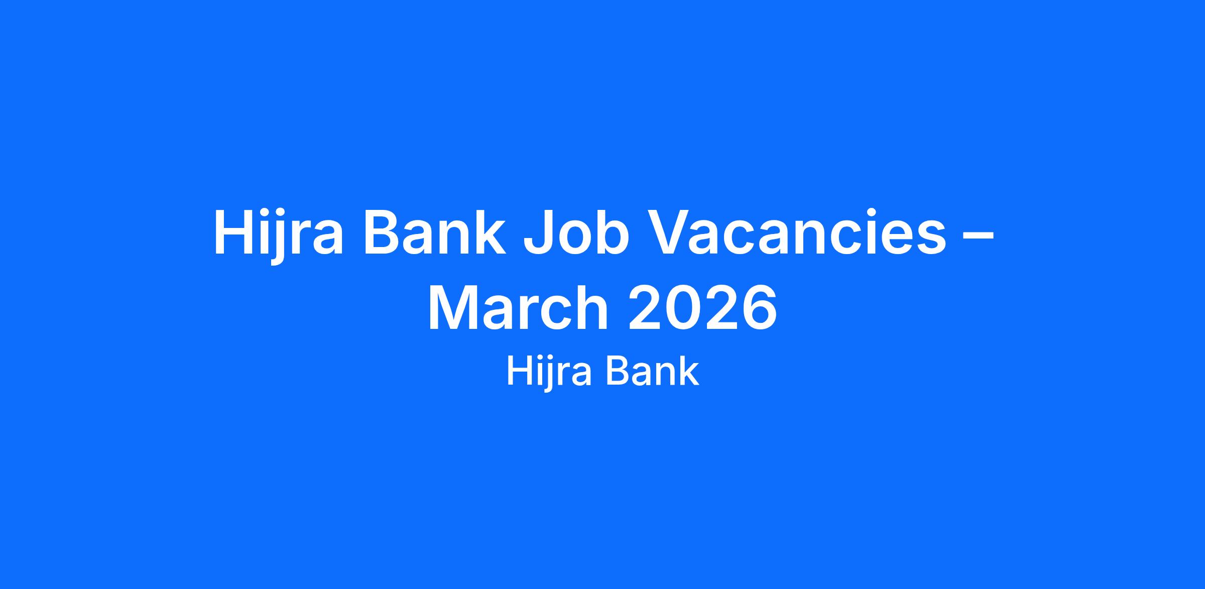 Hijra Bank Job Vacancies – March 2026