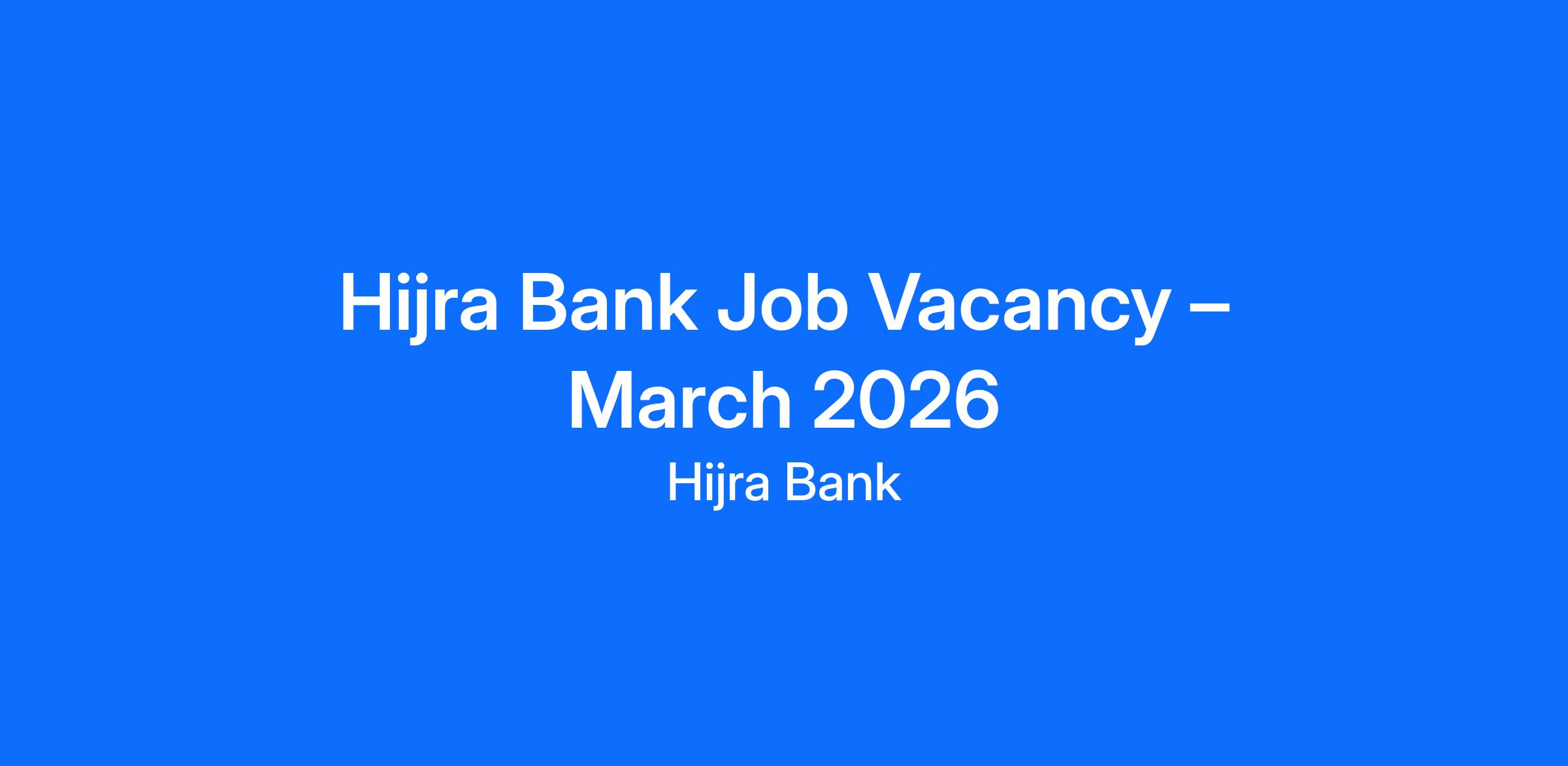 🌟 Hijra Bank Job Vacancy – March 2026