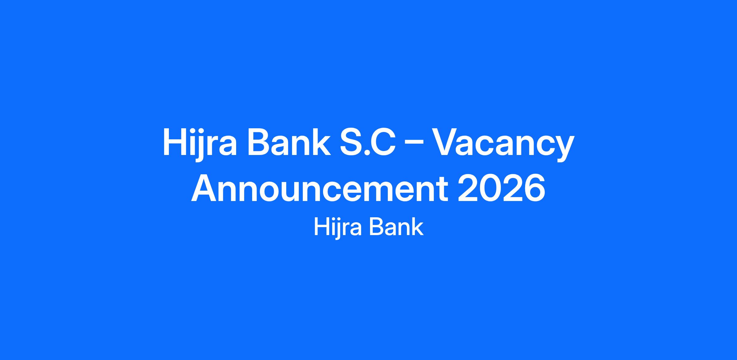 Hijra Bank S.C – Vacancy Announcement 2026
