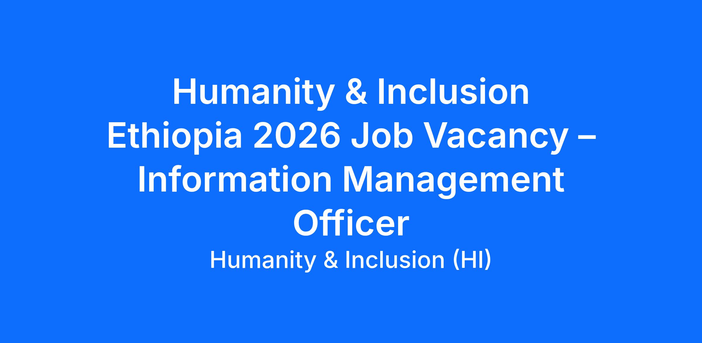 Humanity & Inclusion Ethiopia 2026 Job Vacancy – Information Management Officer: