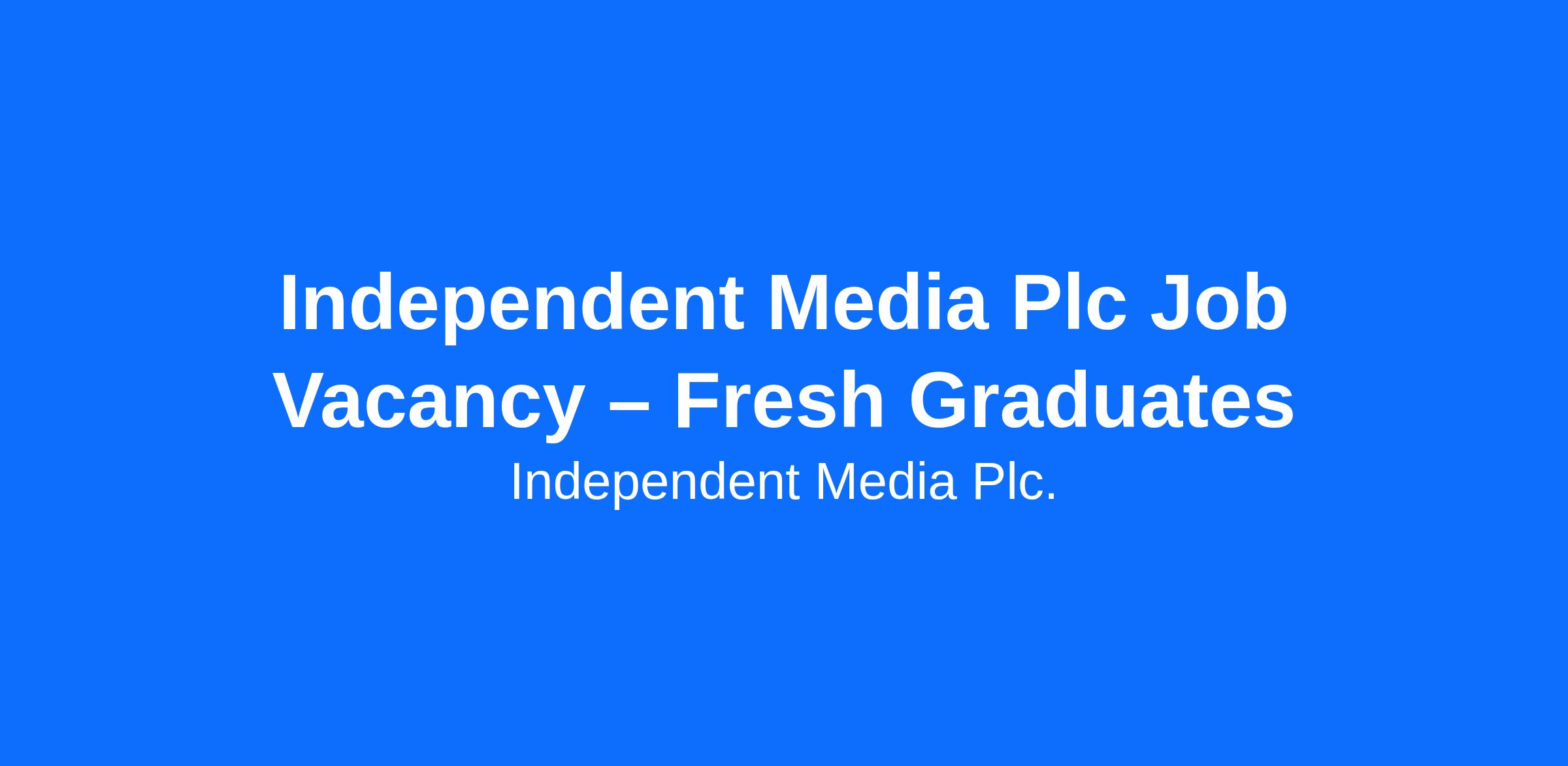 Independent Media Plc Job Vacancies – Fresh Graduates and Experienced Reporters