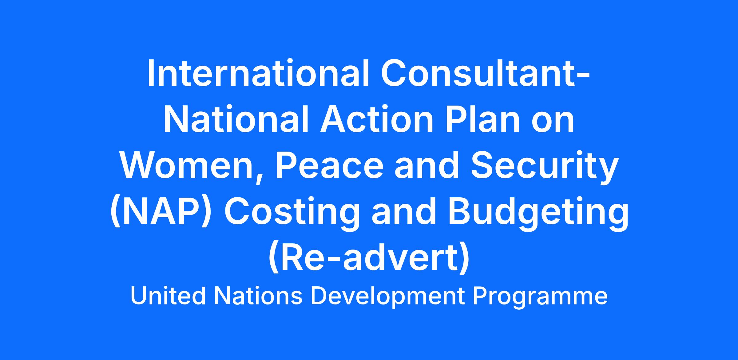 International Consultant-National Action Plan on Women, Peace and Security (NAP) Costing and Budgeting (Re-advert)