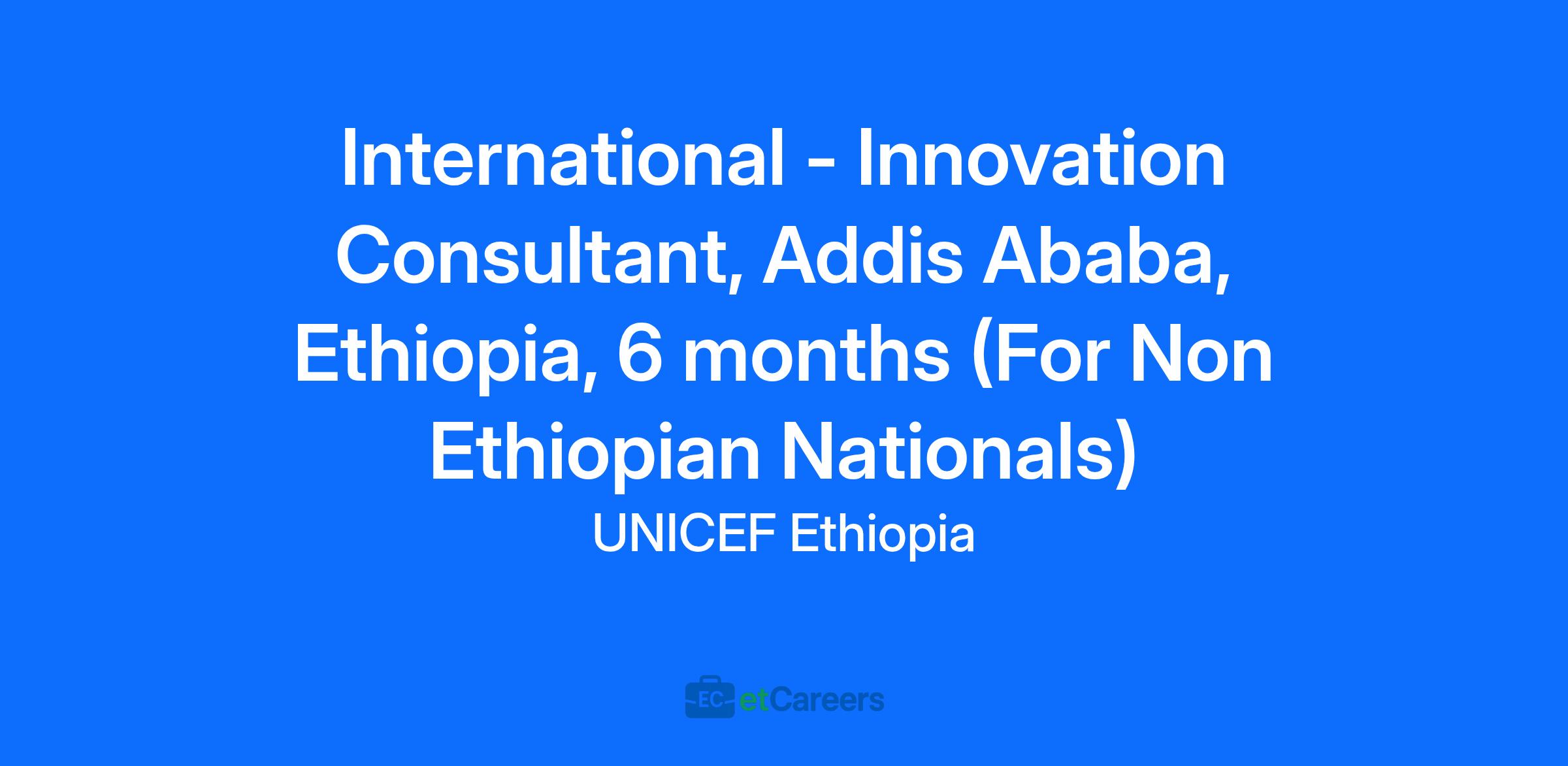International - Innovation Consultant, Addis Ababa, Ethiopia, 6 months (For Non Ethiopian Nationals)