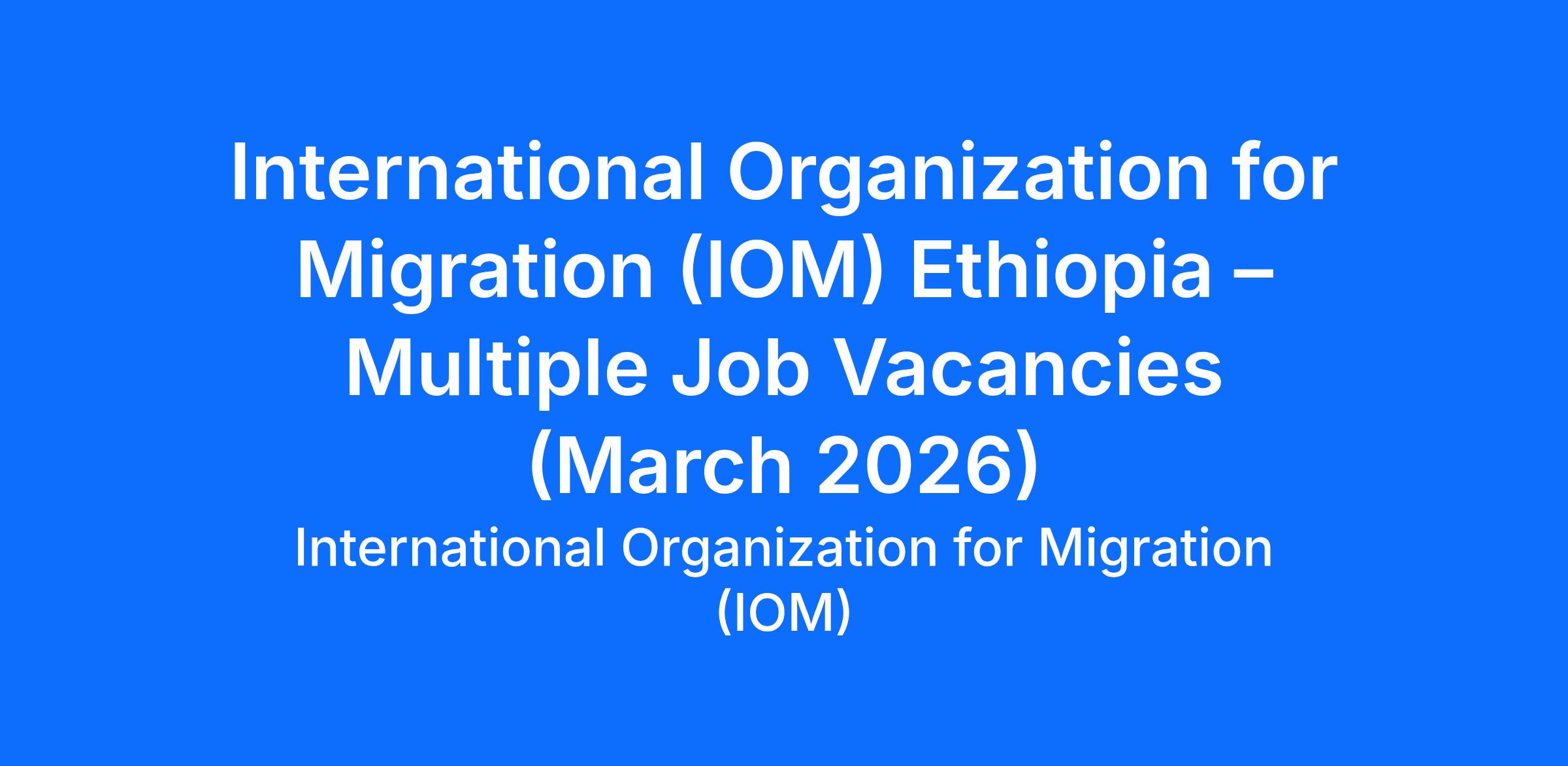 International Organization for Migration (IOM) Ethiopia – Multiple Job Vacancies (March 2026)