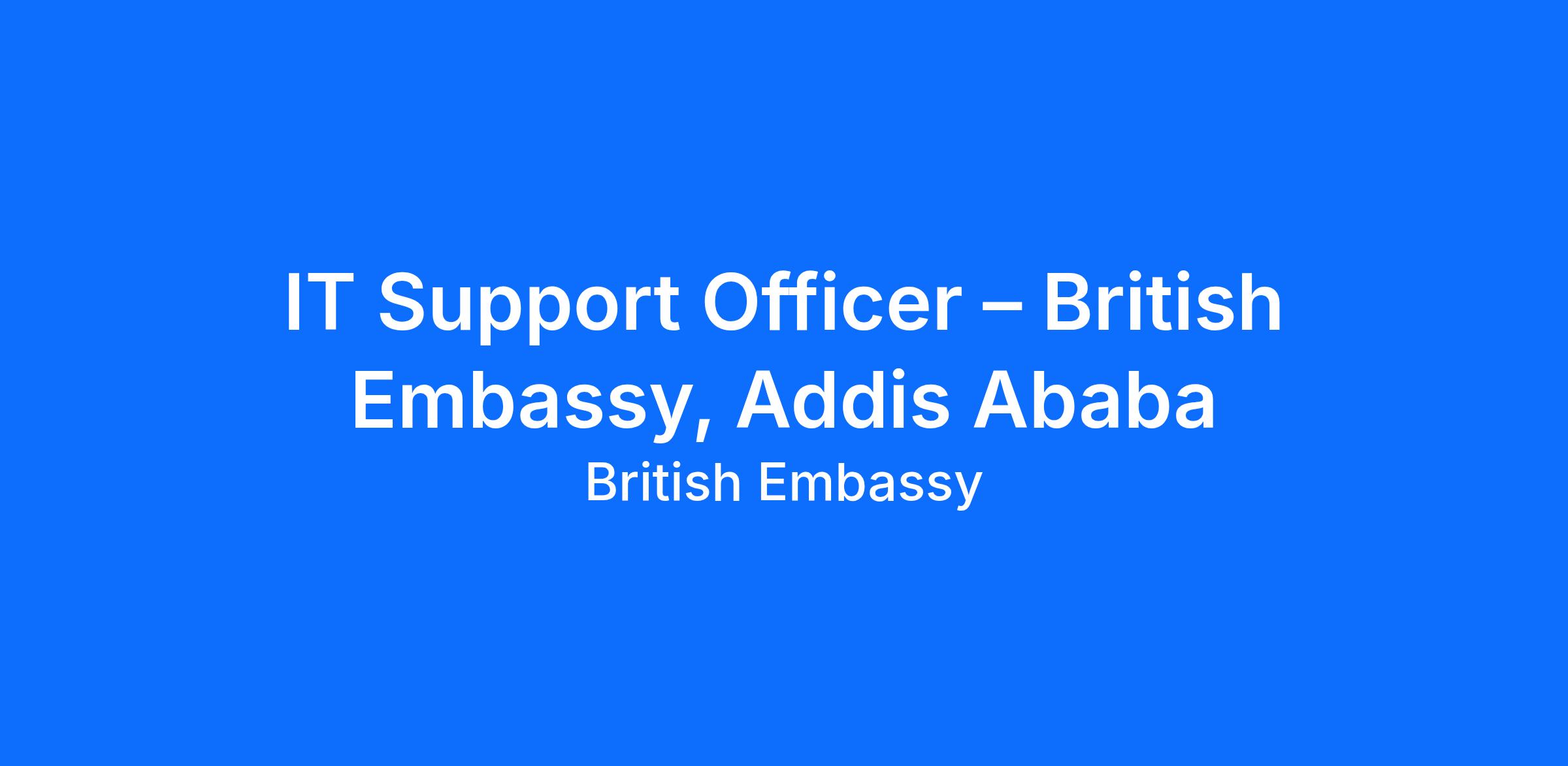 The British Embassy in Addis Ababa is seeking a qualified IT Support Officer to join its integrated team. This role offers the opportunity to contribute to the Embassy’s IT operations while supporting a wide range of development and diplomatic programs. The post holder will provide technical assistance, maintain IT systems, and ensure smooth IT service delivery across the mission. This role is based in Addis Ababa, Ethiopia, and follows standard Ethiopian labor practices. Etcareers editorial note: This position provides a valuable career opportunity for IT professionals looking to work in an international mission context.