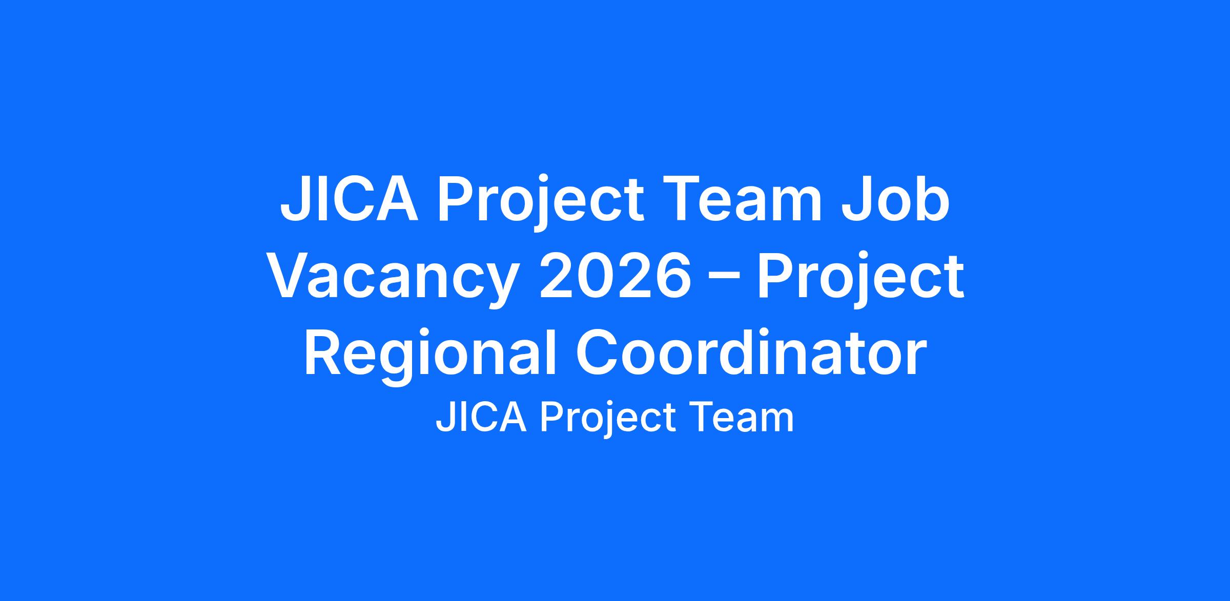 JICA Project Team Job Vacancy 2026 – Project Regional Coordinator
