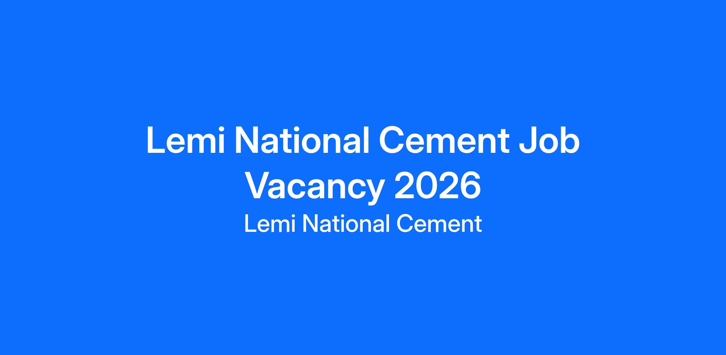 Lemi National Cement Job Vacancy 2026