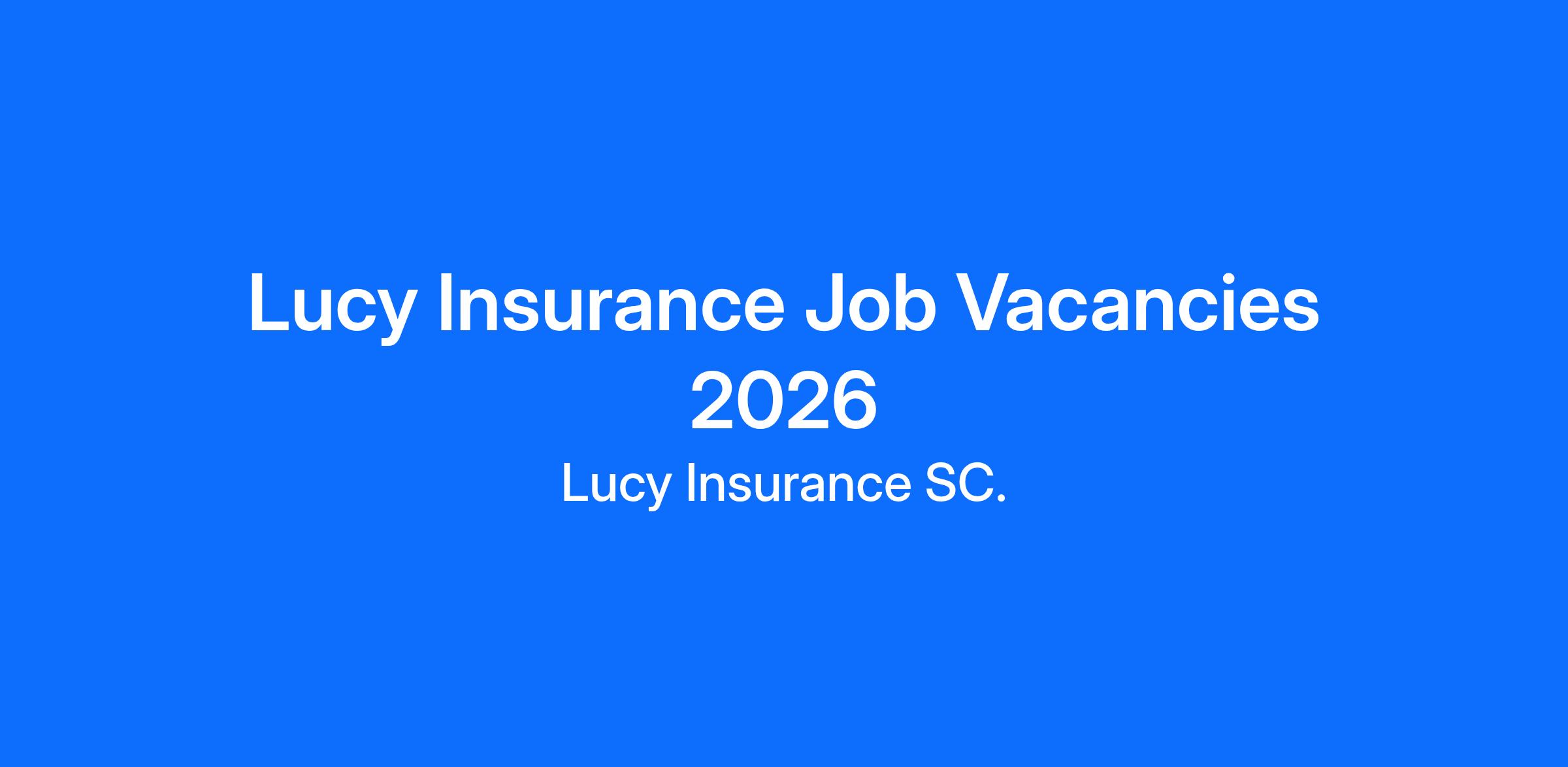 Lucy Insurance S.C. invites interested and qualified applicants for the following insurance jobs in the insurance sector.
