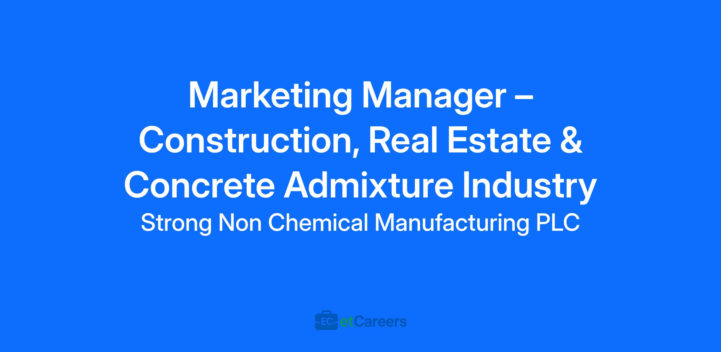 We are seeking a dynamic and strategic Marketing Manager to lead marketing initiatives in the construction, real estate, and concrete admixture industry. The ideal candidate is compassionate, charismatic, and results-driven, able to integrate marketing strategies across departments to achieve company objectives. They should have solid experience in marketing, strong knowledge of marketing tools and metrics, and a clear understanding of the 4 Ps of marketing (Product, Price, Place, Promotion).