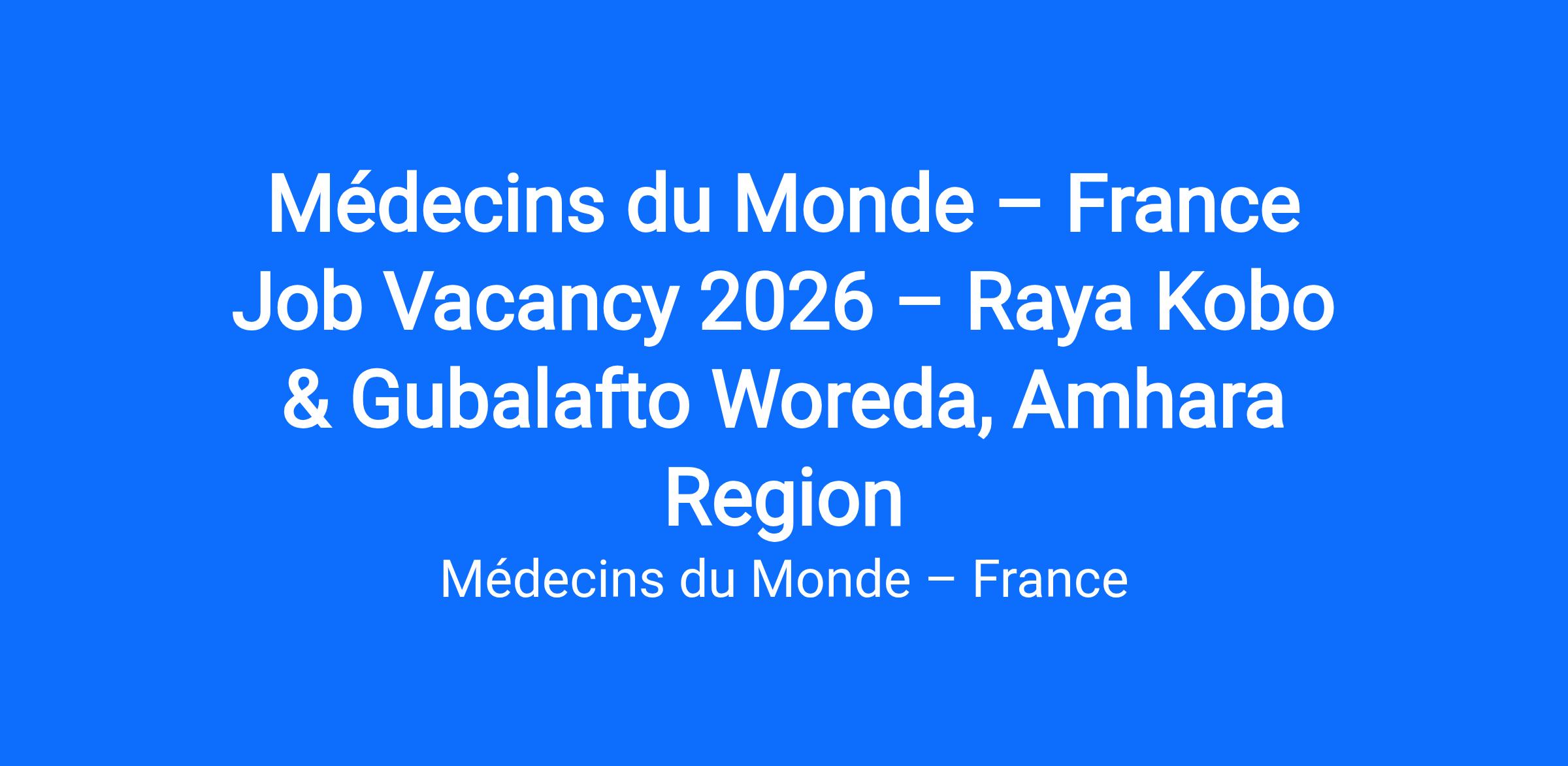 Médecins du Monde – France Job Vacancy 2026 – Raya Kobo & Gubalafto Woreda, Amhara Region