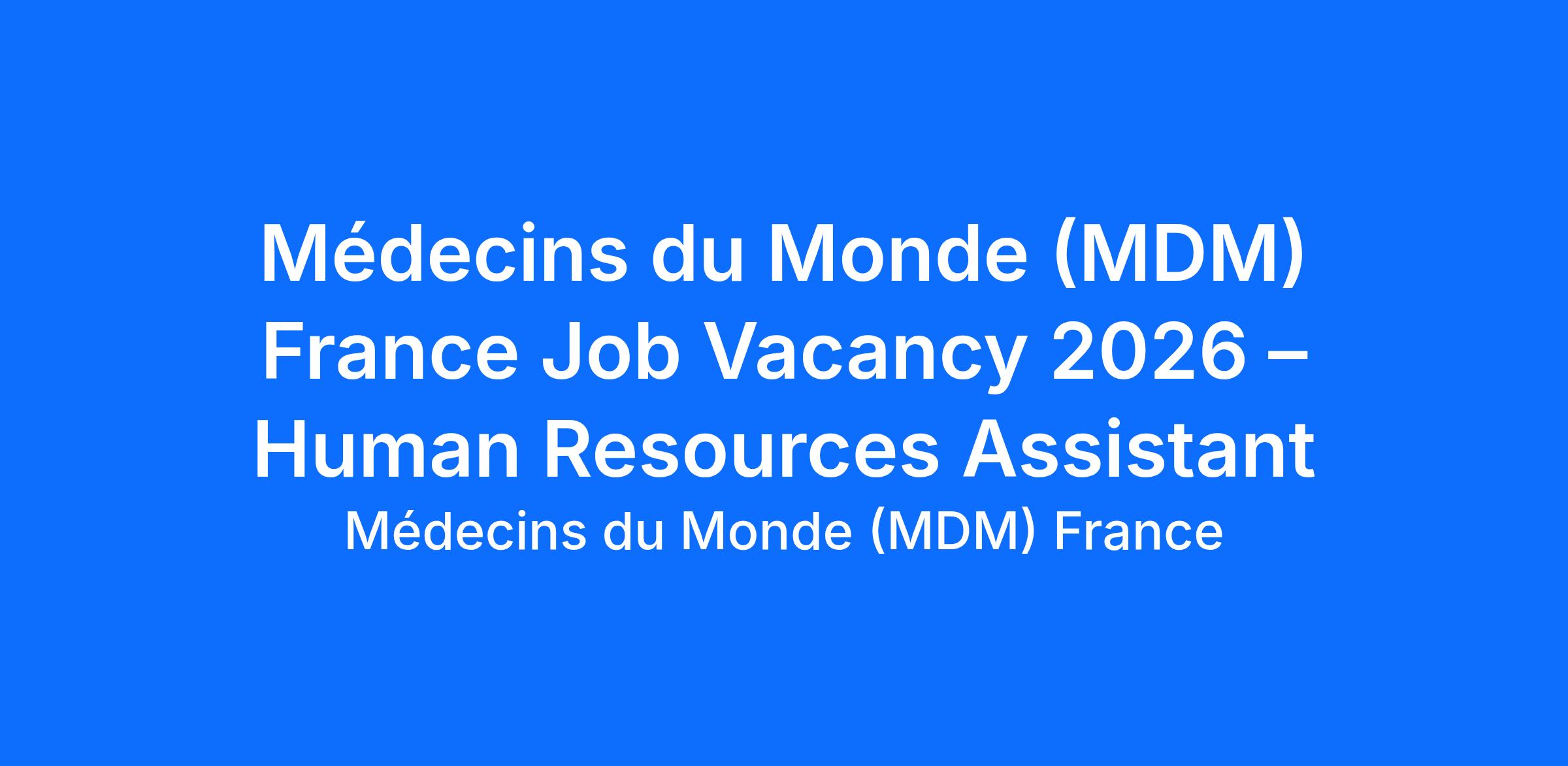 Médecins du Monde (MDM) France Job Vacancy 2026 – Human Resources Assistant