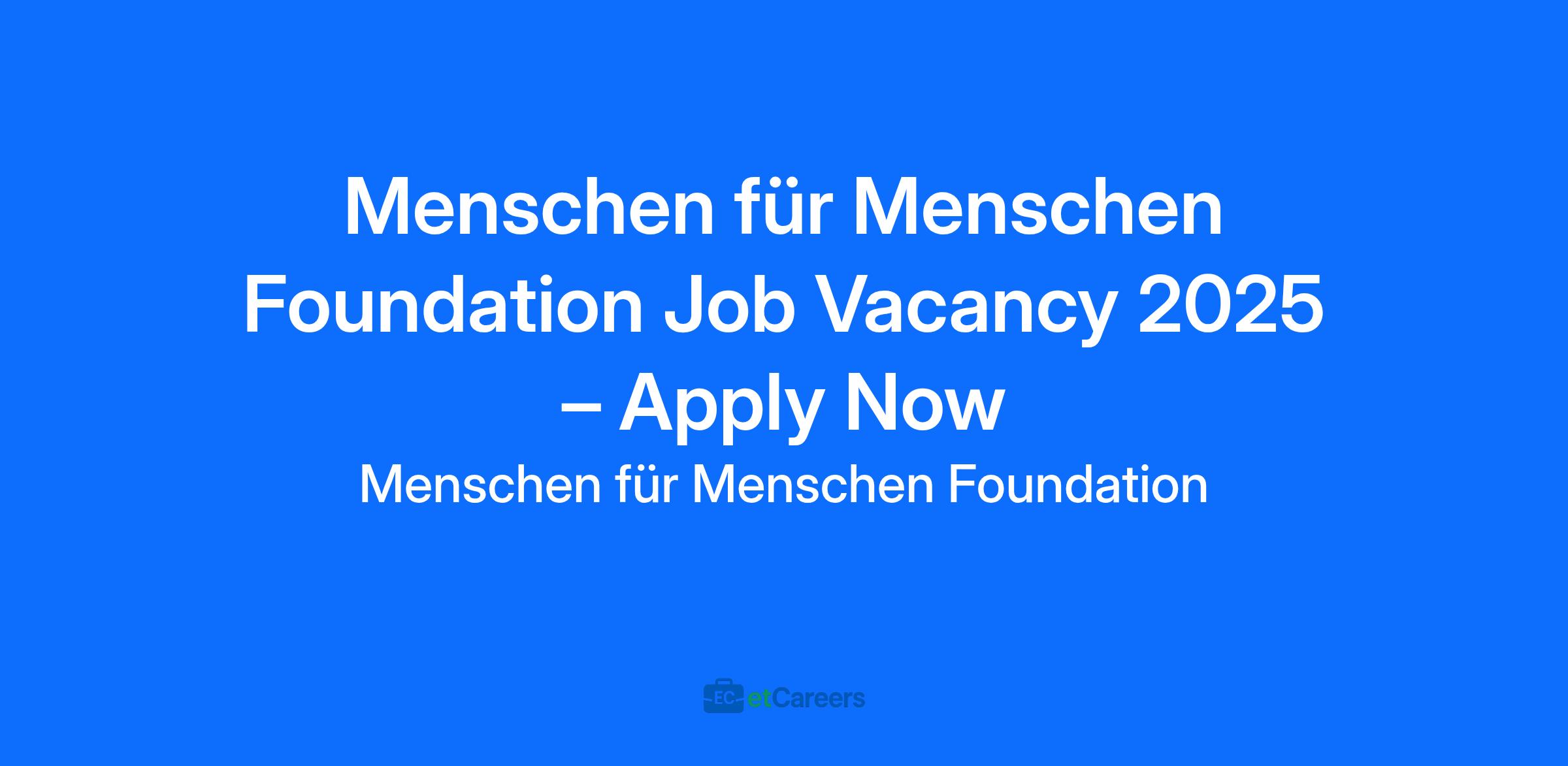 Menschen für Menschen Foundation Job Vacancy 2025 – Apply Now