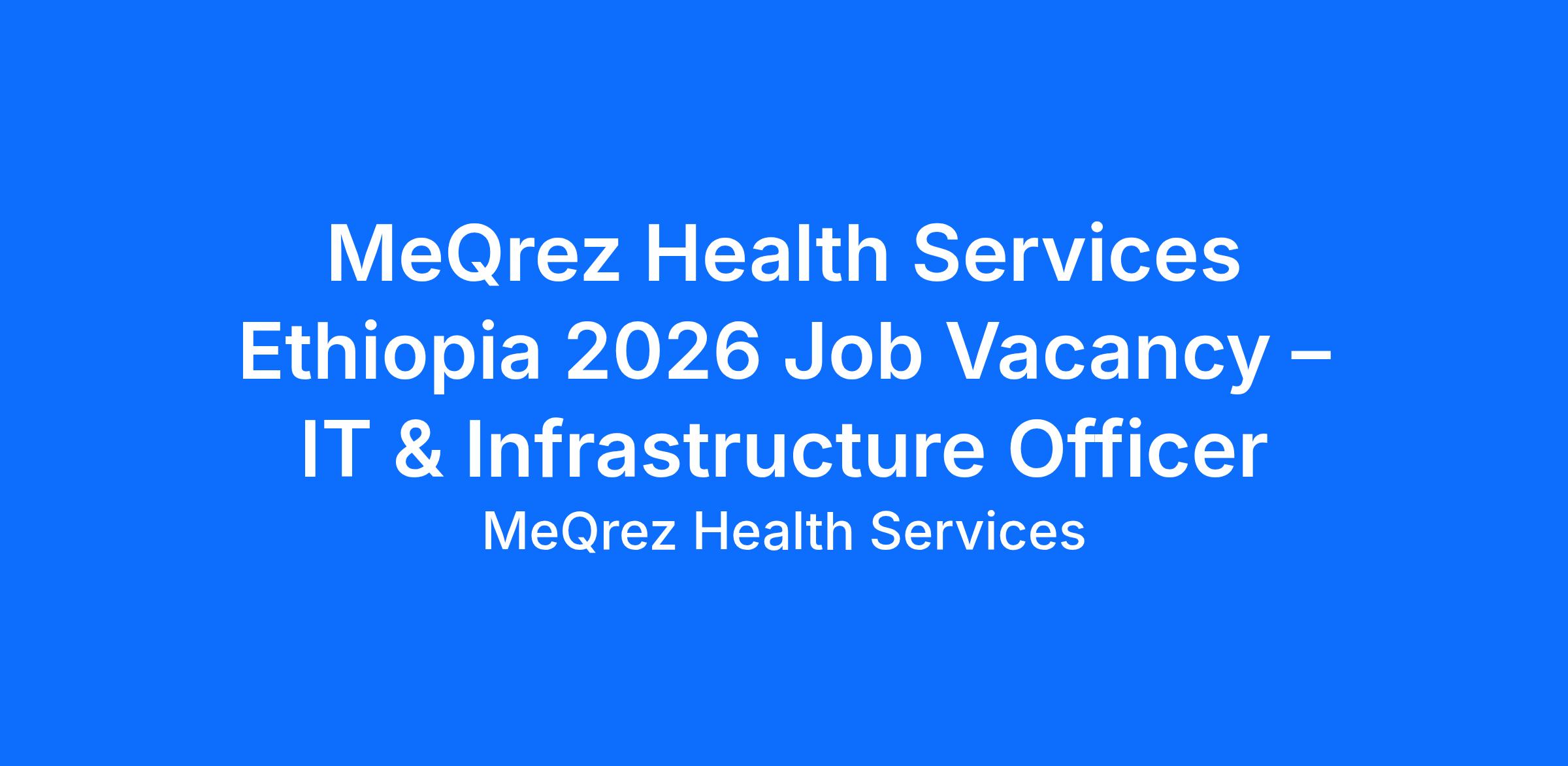 MeQrez Health Services Ethiopia 2026 Job Vacancy – IT & Infrastructure Officer