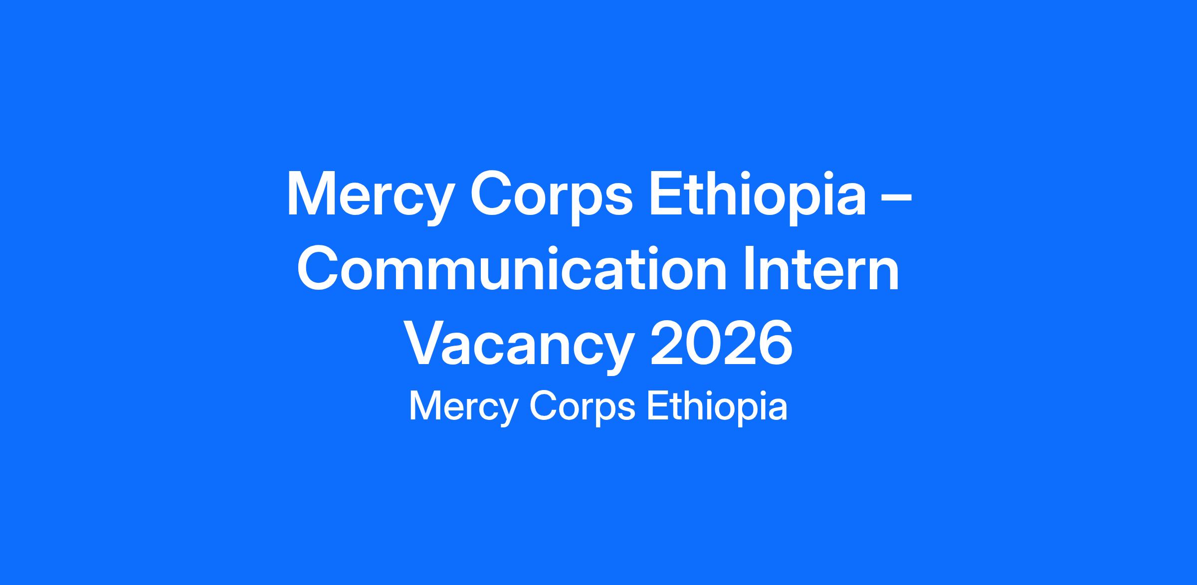 Note: Mercy Corps is an equal opportunity employer. Female and young candidates are strongly encouraged to apply.